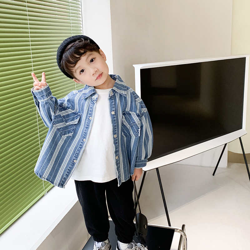 Children's autumn clothes boy Cowboy shirt jacket Spring and autumn cash male baby Long sleeve striped shirt Children's foreign blouse