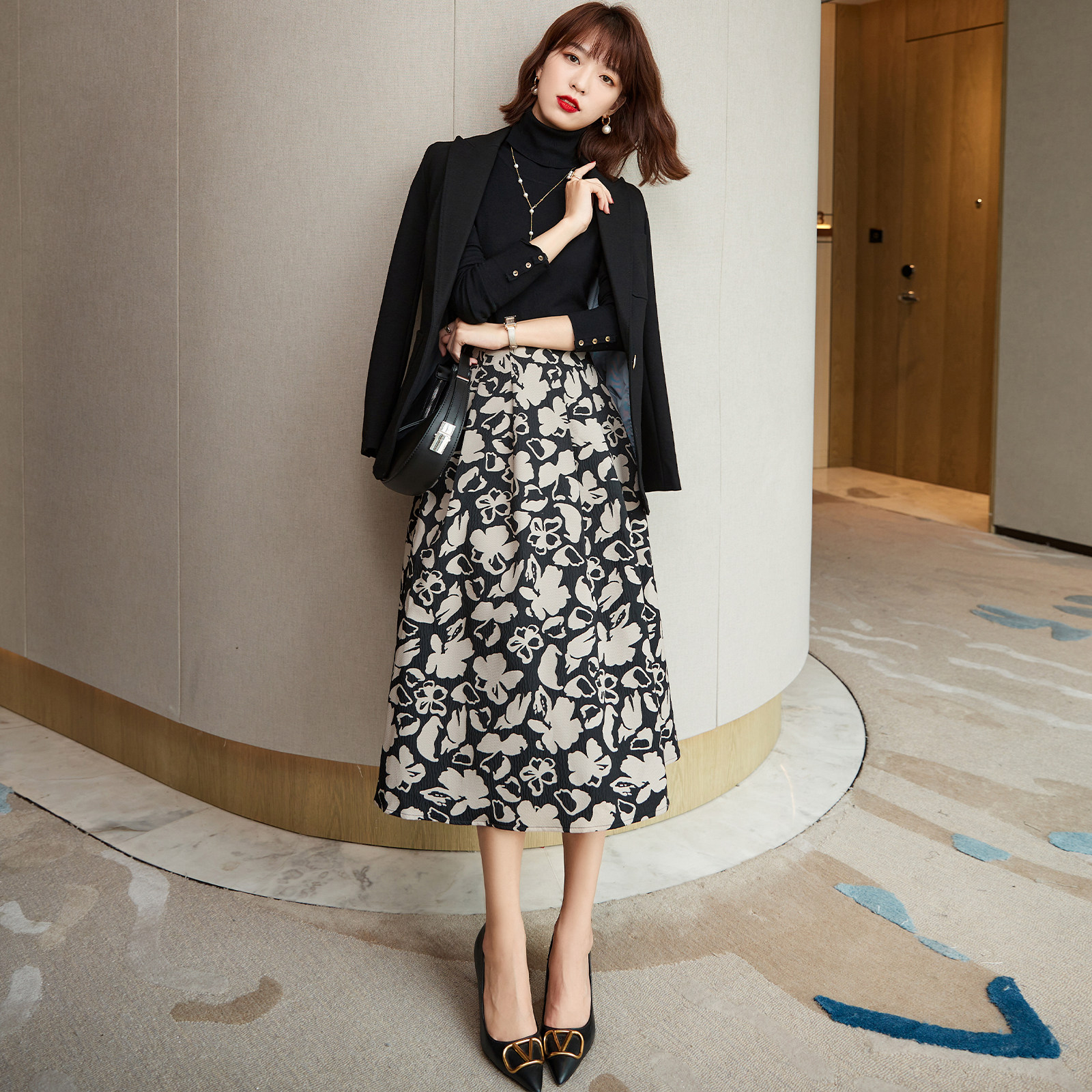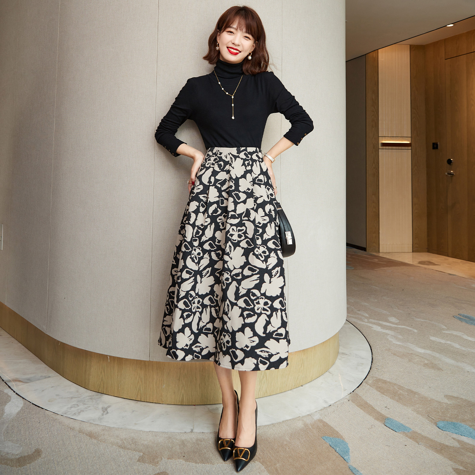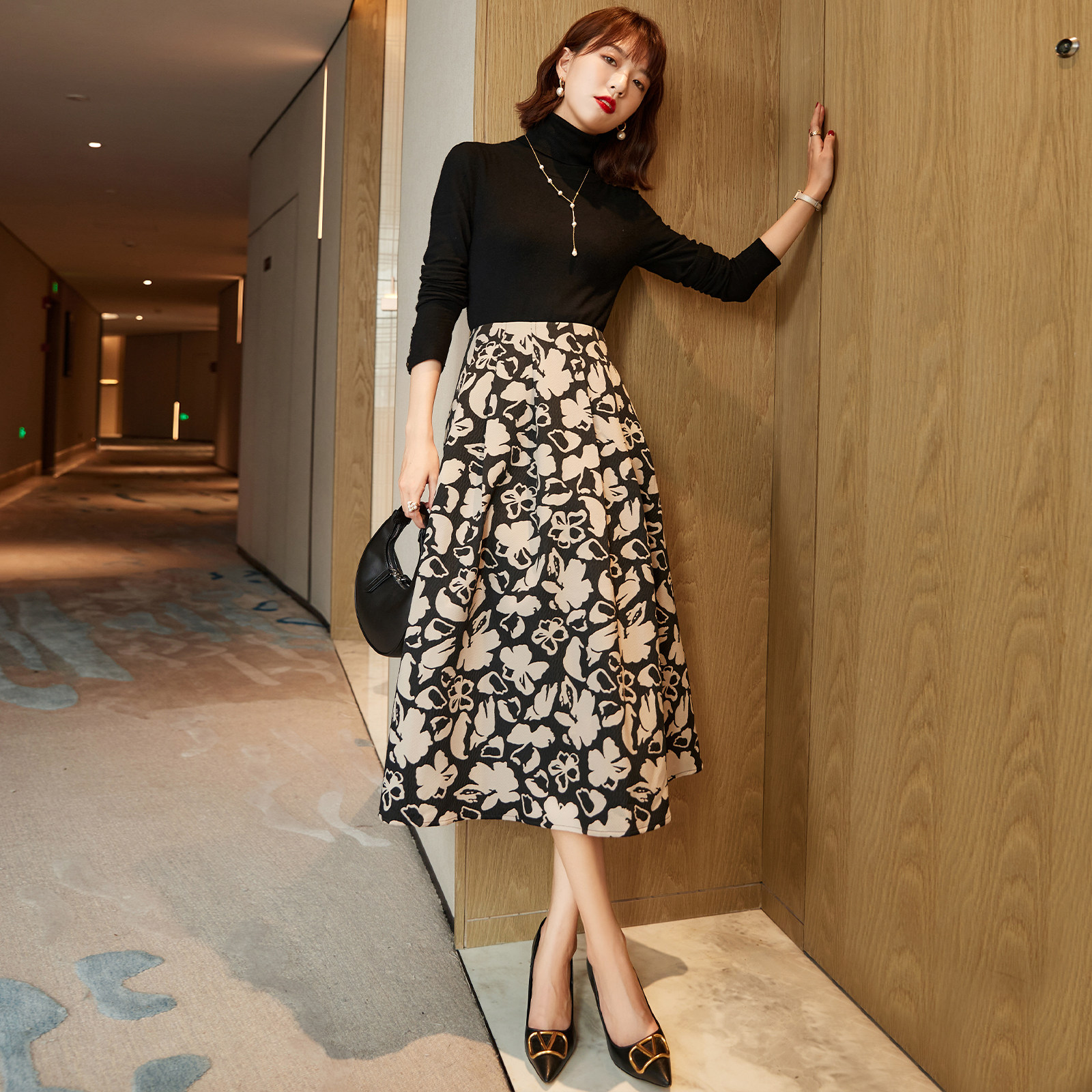 Store length recommendation ~ elegant 100 hitch temperament 2022 spring new pint style printed high waist display slim and half body dress