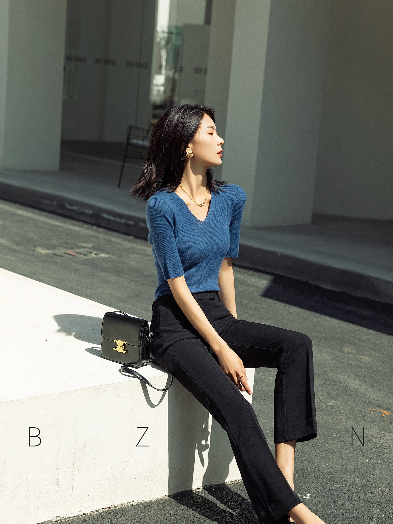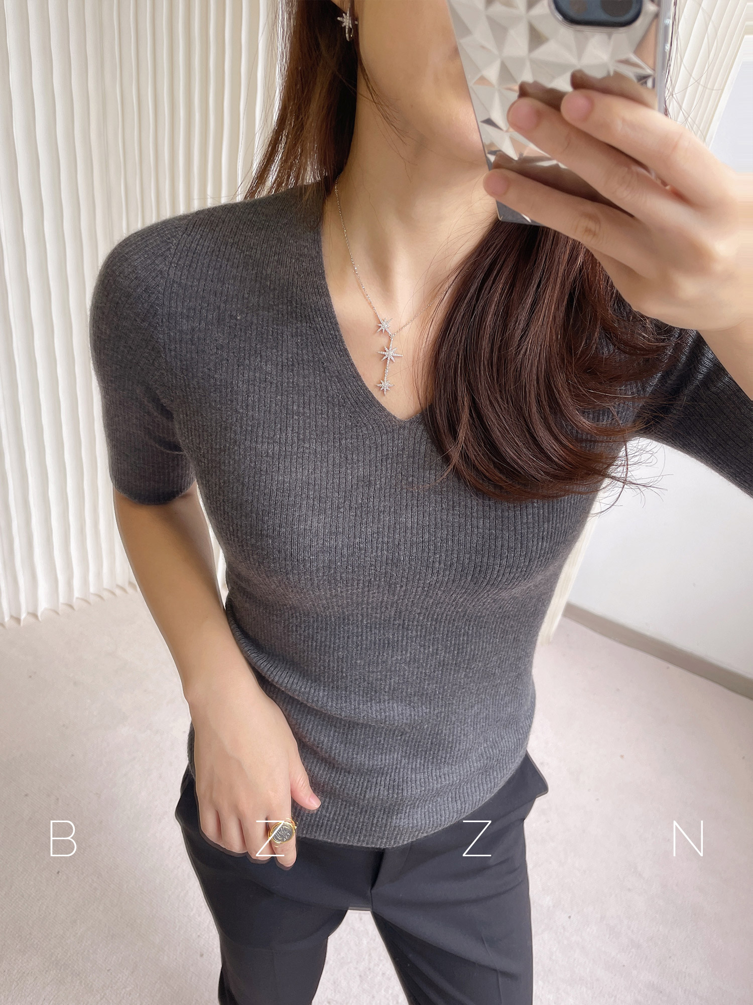 Classic commuter top fit version pure cashmere 18G seamless integrated knit pit bar V neckline with slim mid sleeve lap