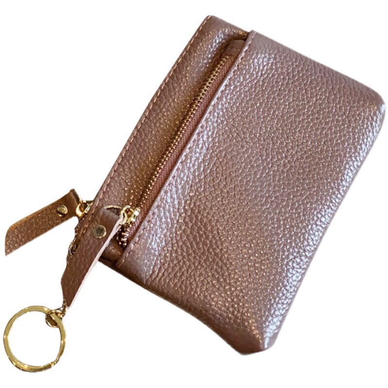 Genuine leather small zero wallet woman mini key triple Korean cute hand held cow leather money bag Jane about zipped small wallet-Taobao