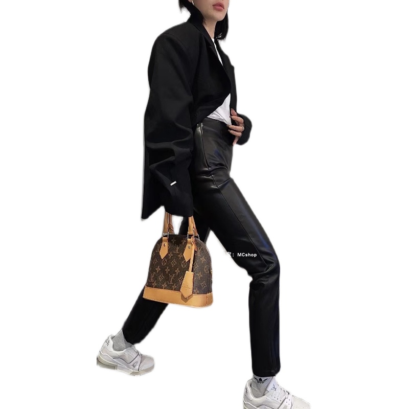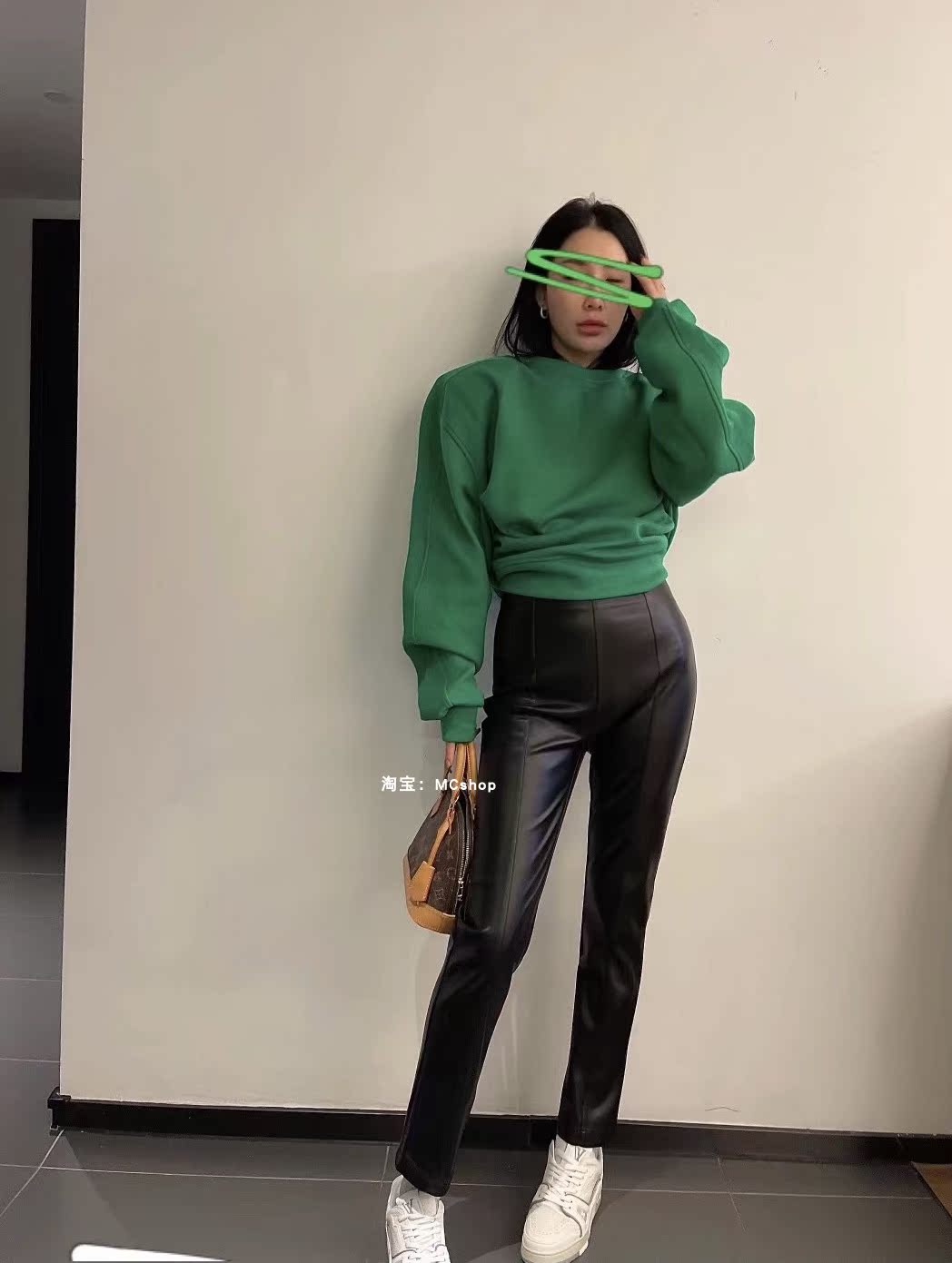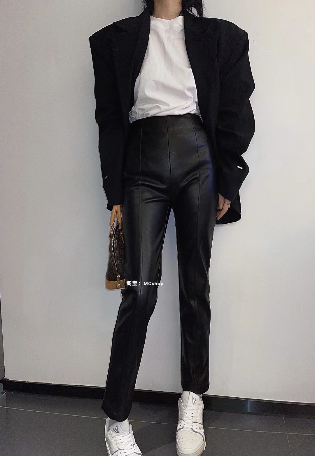 2021 autumn and winter new European and American hot girls high waist all-match casual PU leather sexy straight trousers leather pants casual pants women