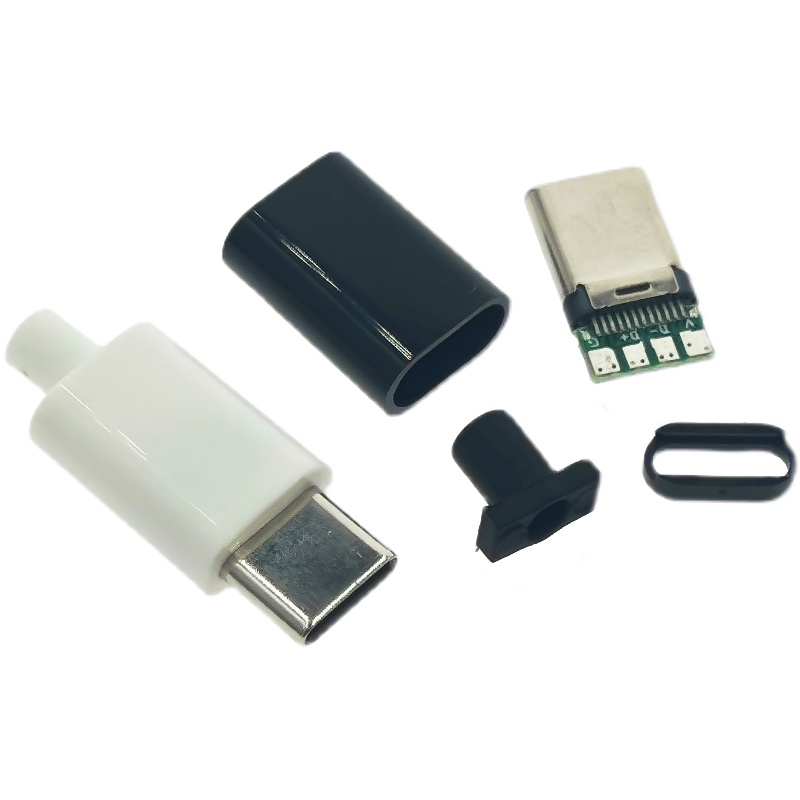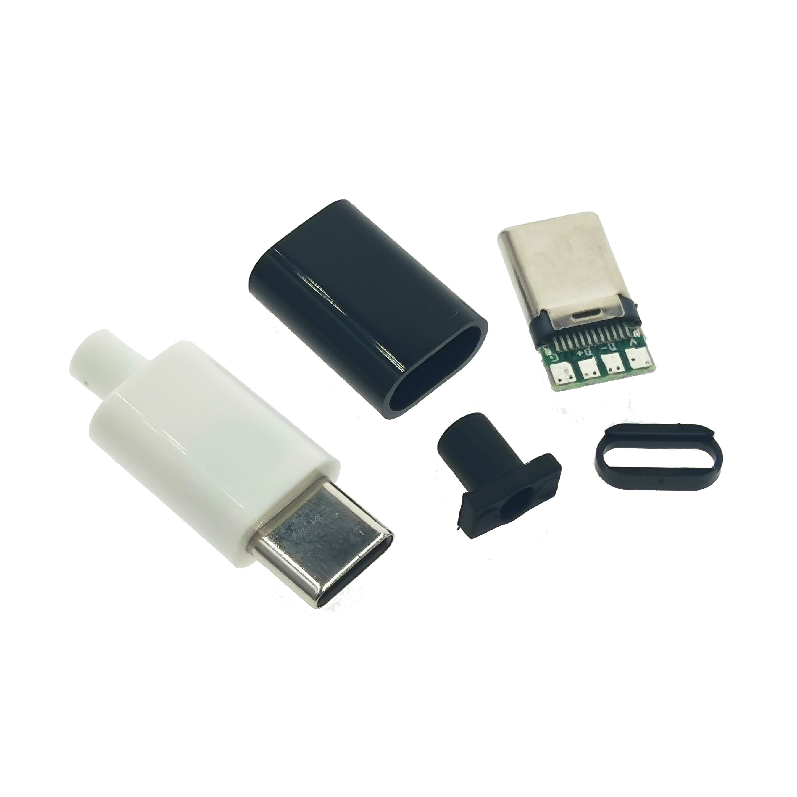 USB male head type-C plug large current fast charging data wire head flip-plug charging wire plug black and white