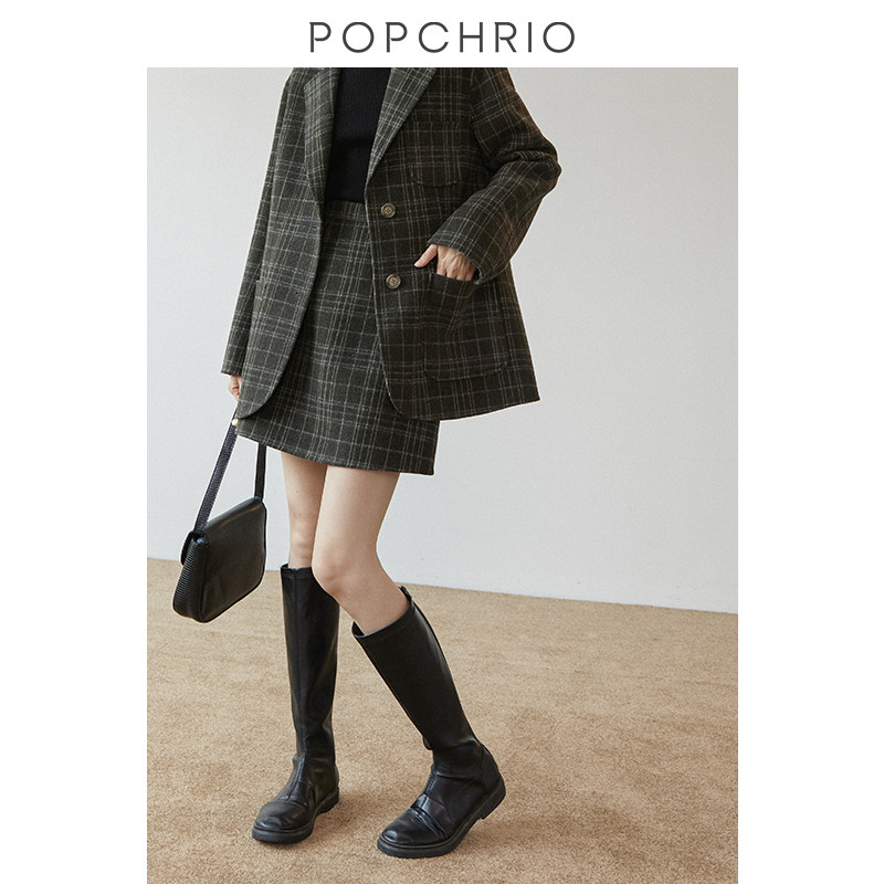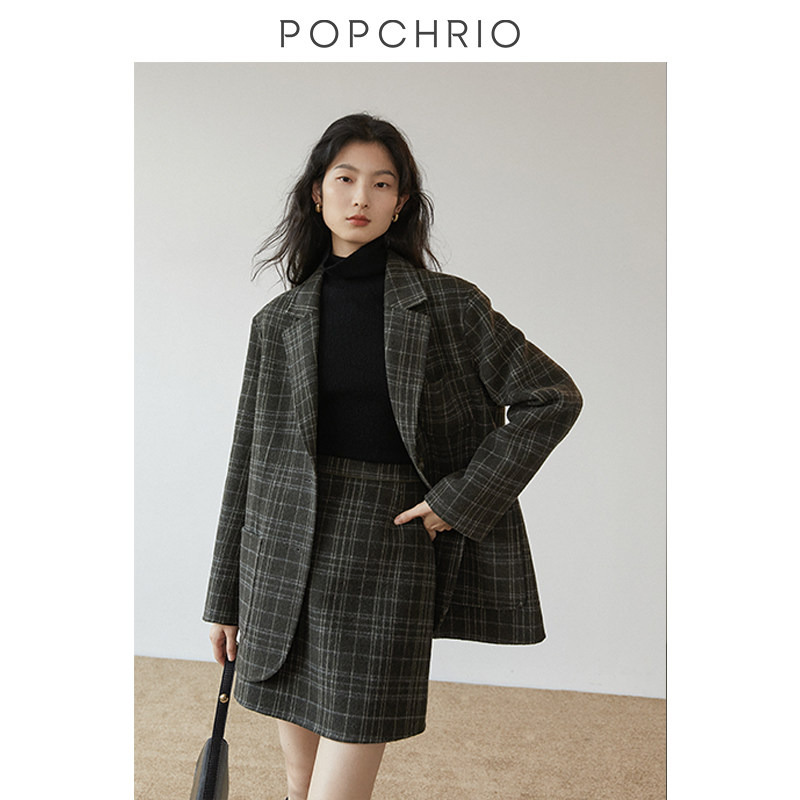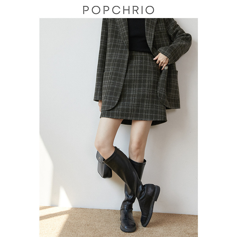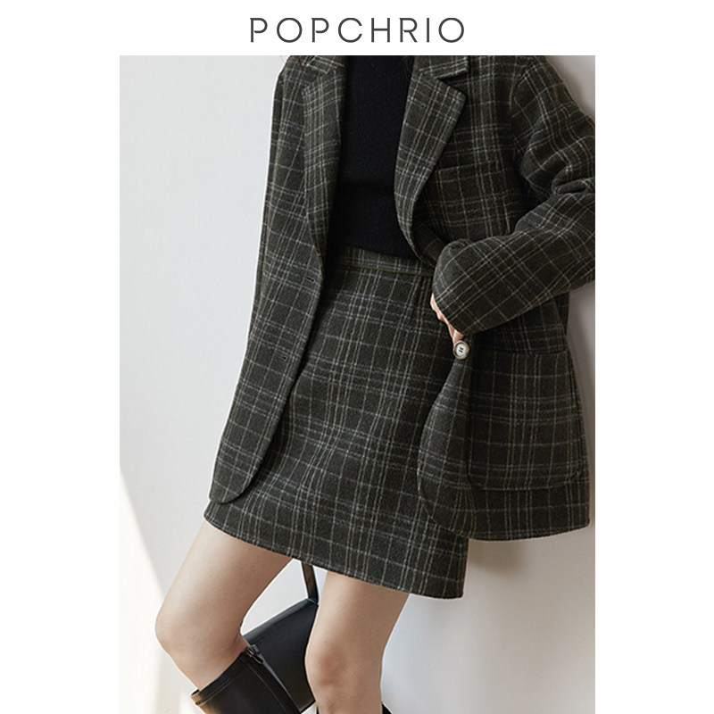 O'KeRui ◆ antique plaid wool skirt high waist double-sided Tweed A word wool short skirt suit skirt female autumn