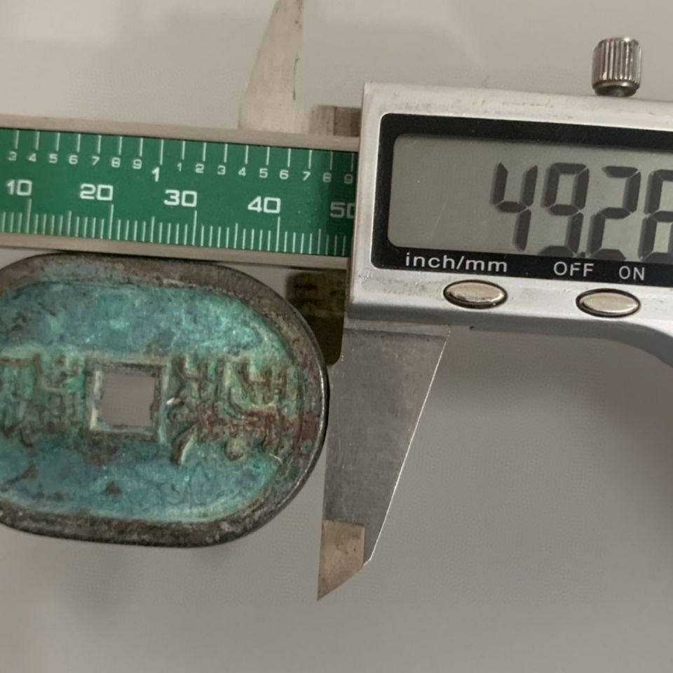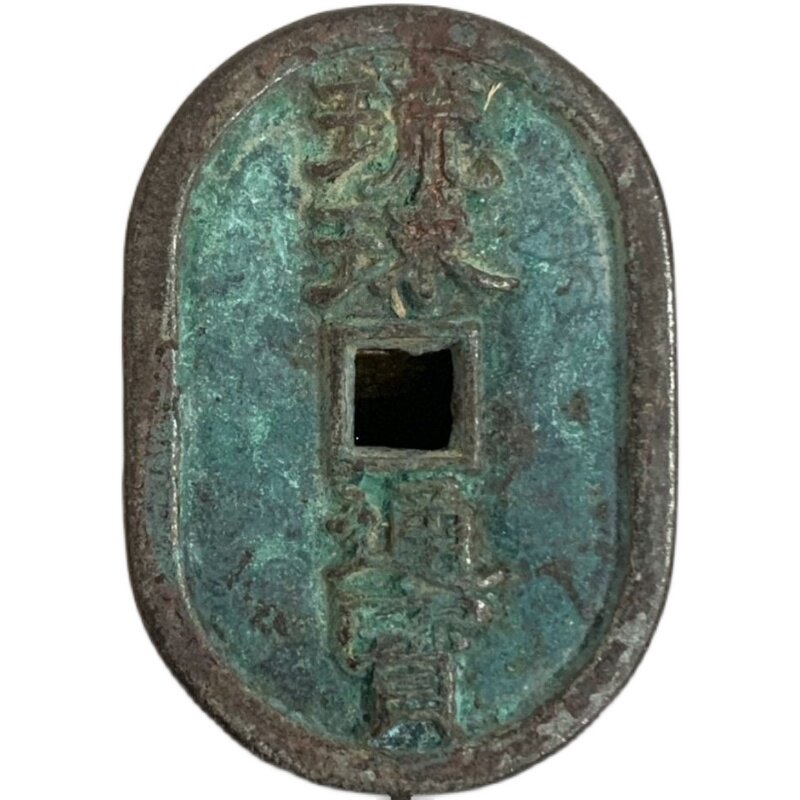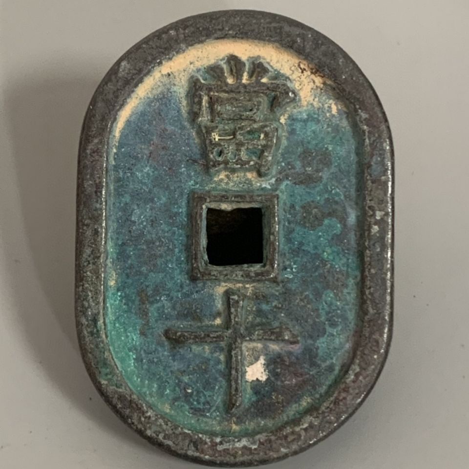 Ancient Coin Bronze Money Collection Japan Jin Ryukyu Tongbao When it is ten Green embroidered bag Pulp Oval Genuine old objects to play