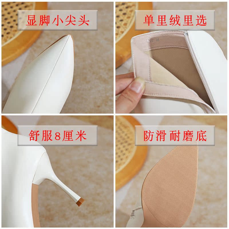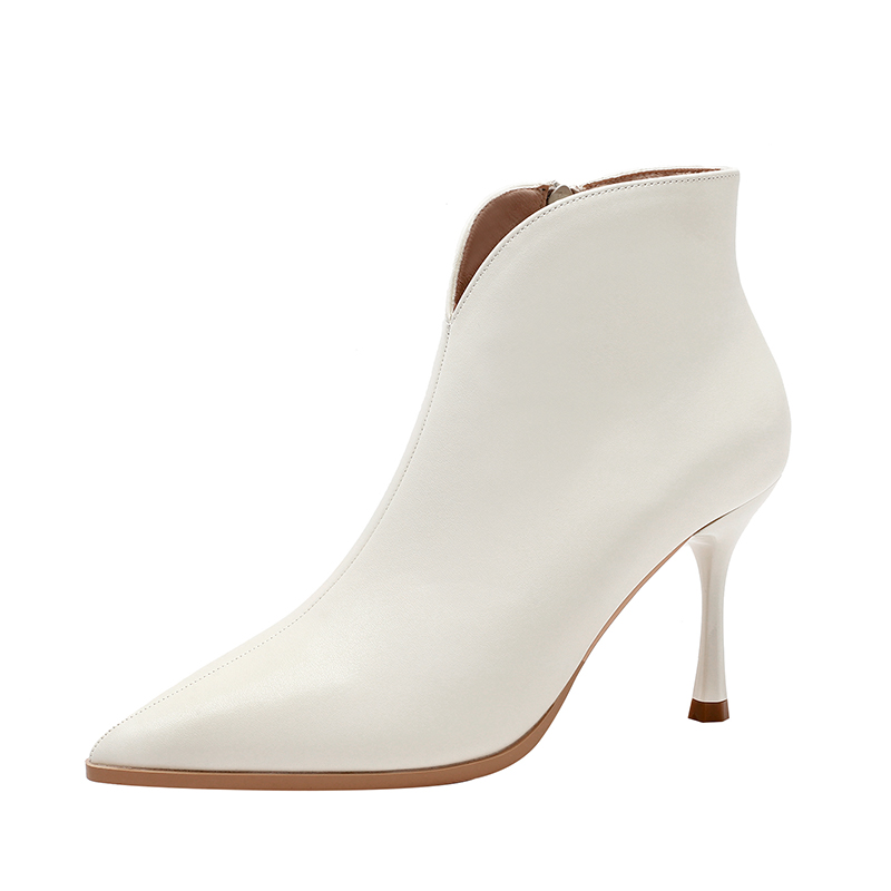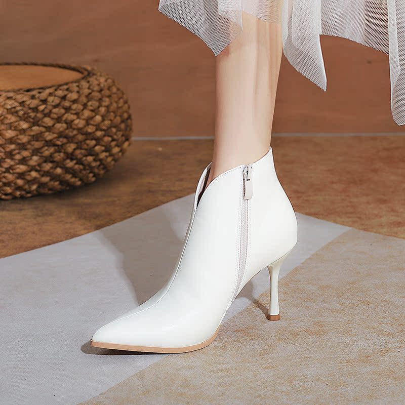 White short boots women's French pointed toe high-heeled soft leather small new product hot style thin Martin boots 2021 new women