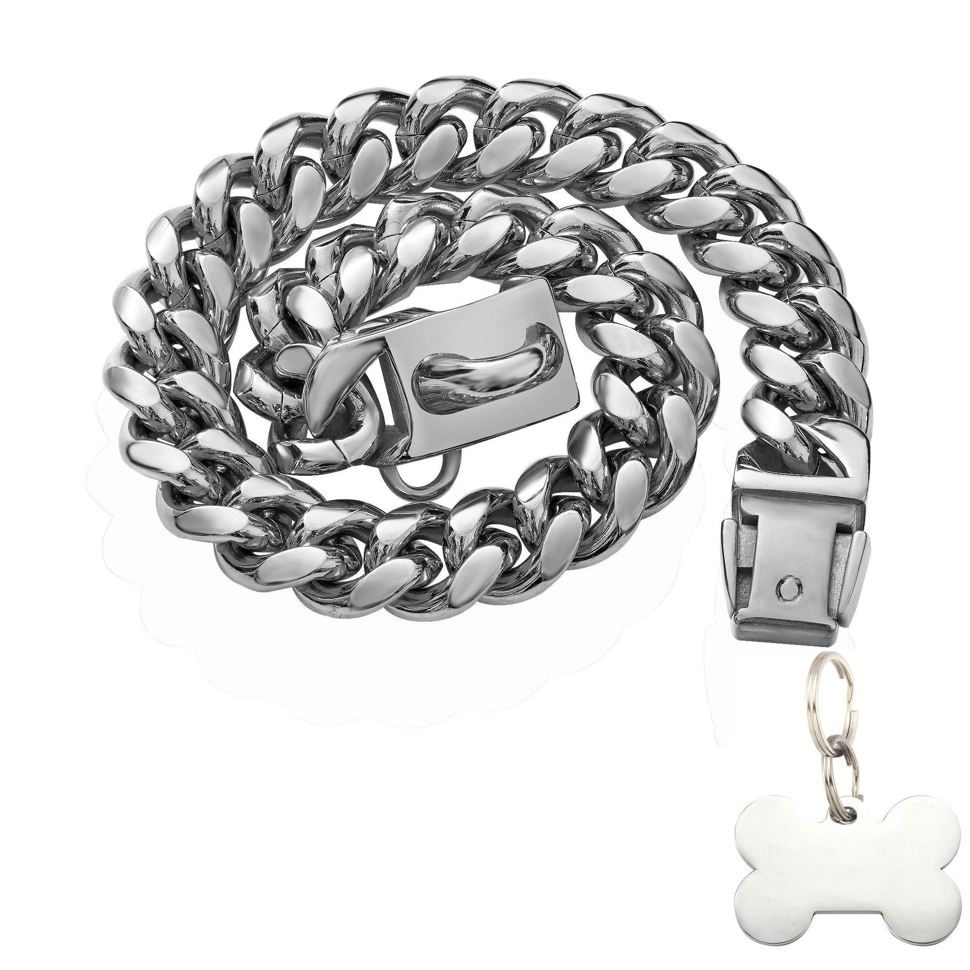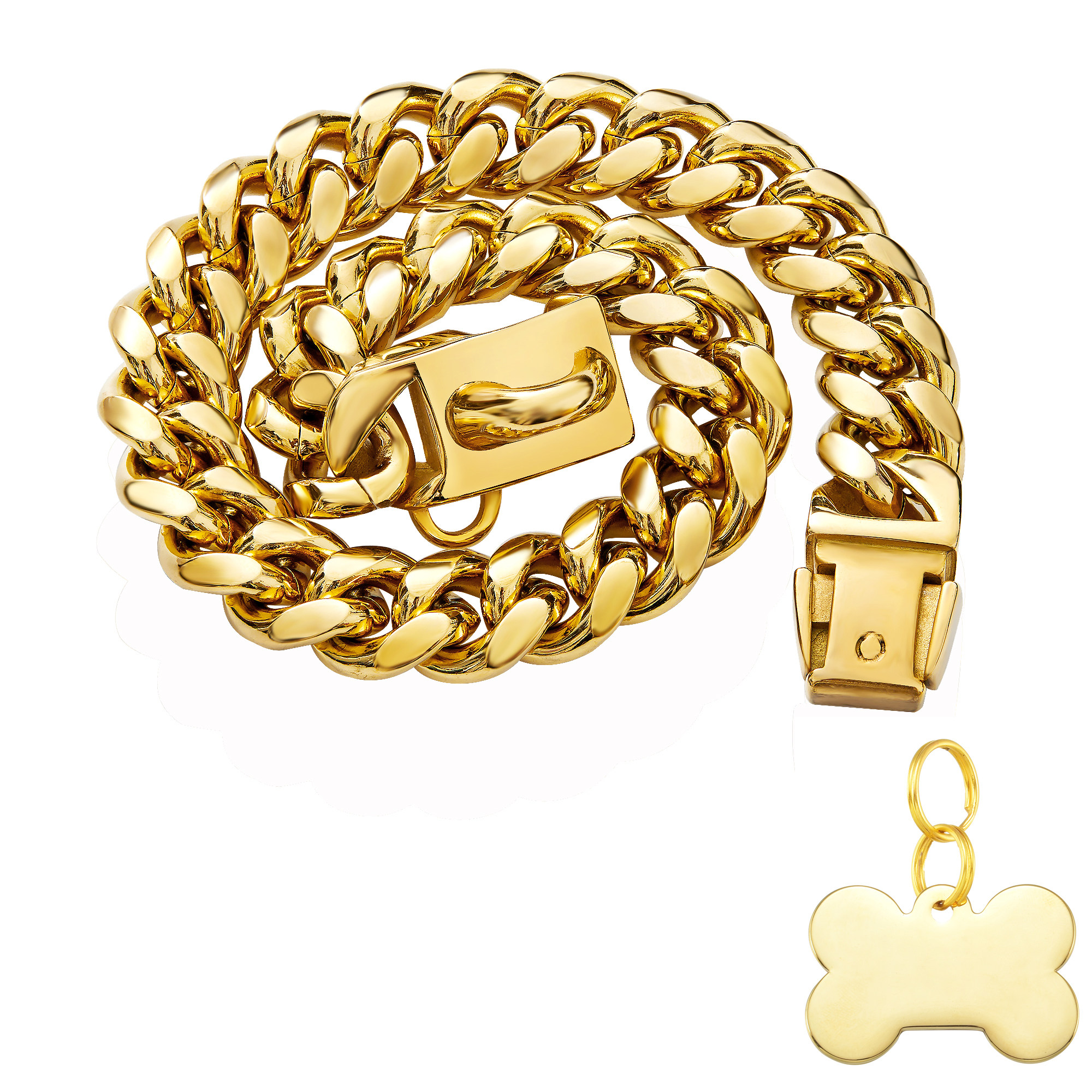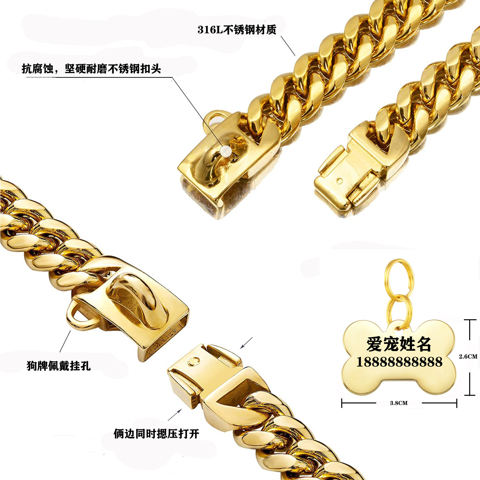 Stainless steel local tyrant gold dog chain dog collar collar collar leash medium and large dogs customized dog tag method to fight bullies
