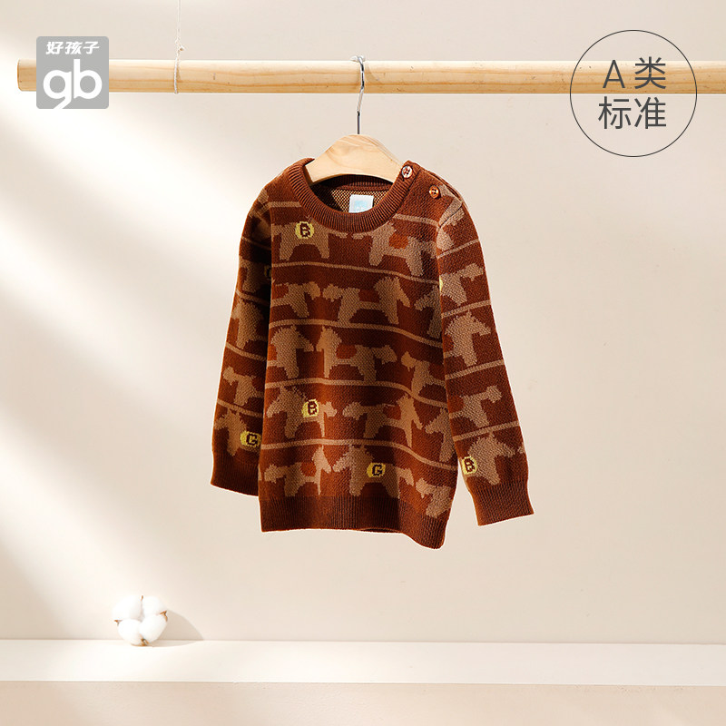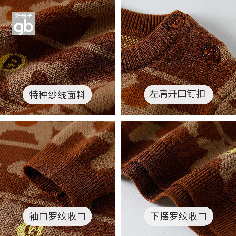 GoodbabyGood Kids childlike hooded sweatshirt open shoulder button 100 lap sweaters knit boy spring autumn set headblouse