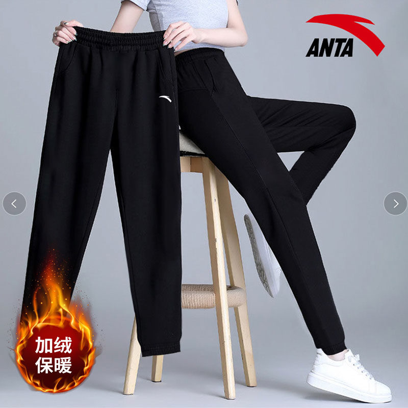 Anta sports pants women's plus velvet thick autumn and winter 2022 new loose leggings trousers elastic casual nine-point pants