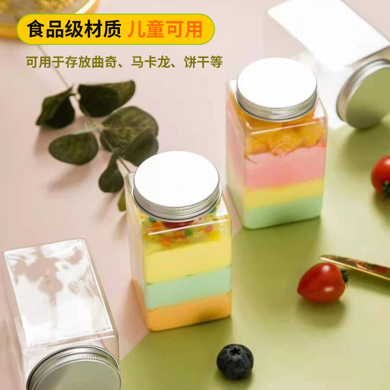 Dessert bottle transparent plastic net red disposable takeaway jar food grade cookie seen flower tea packaging jar