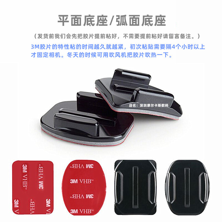 Suitable for GOPRO mountain dog camera safety helmet adhesive base arched curved surface plane 4K recorder hat fixed seat