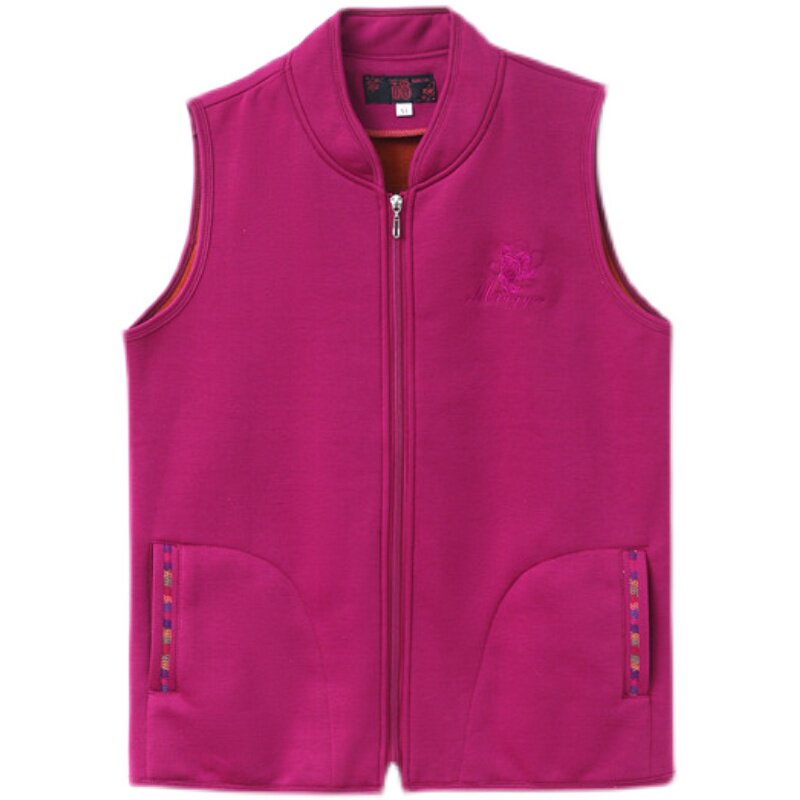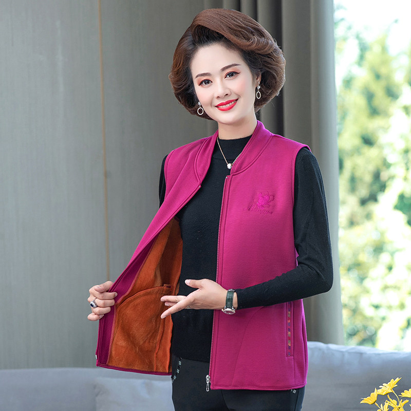 Middle-aged and elderly women's sleeveless fleece vest 2021 autumn new mother's wear warm waistcoat zipper jacket