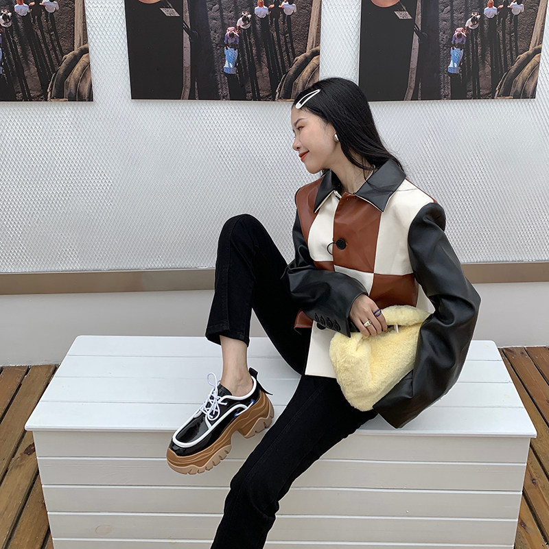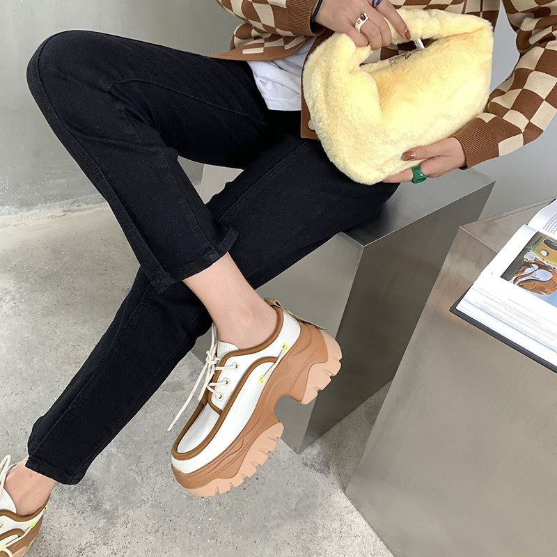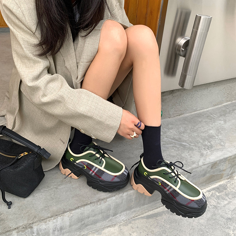 Abaojia sponge cake thick-soled color matching old shoes female ins trendy spring and autumn new niche strap increase casual shoes