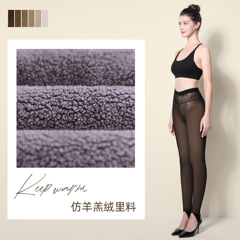 Autumn and winter underwear women's plus velvet thickened fake meat outer wear warm pants stepping on the skin color extra thick lamb velvet cotton pants