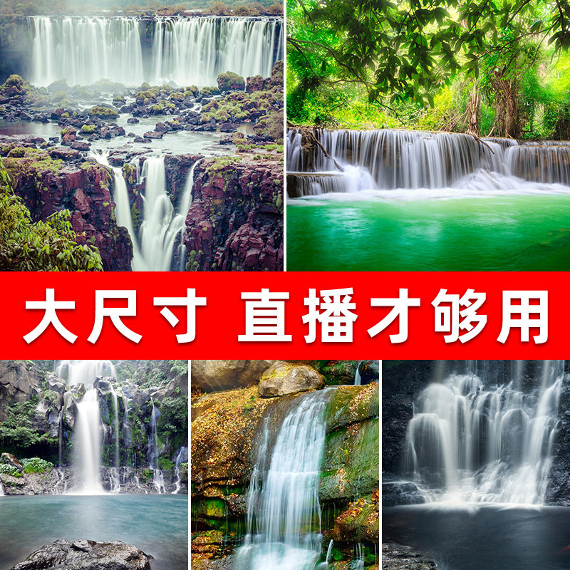 Waterfall landscape forest live broadcast background cloth 3D three-dimensional live broadcast room decoration Internet celebrity anchor photo background wall hanging cloth room layout rural outdoor landscape flower sea vibrato high-definition scene