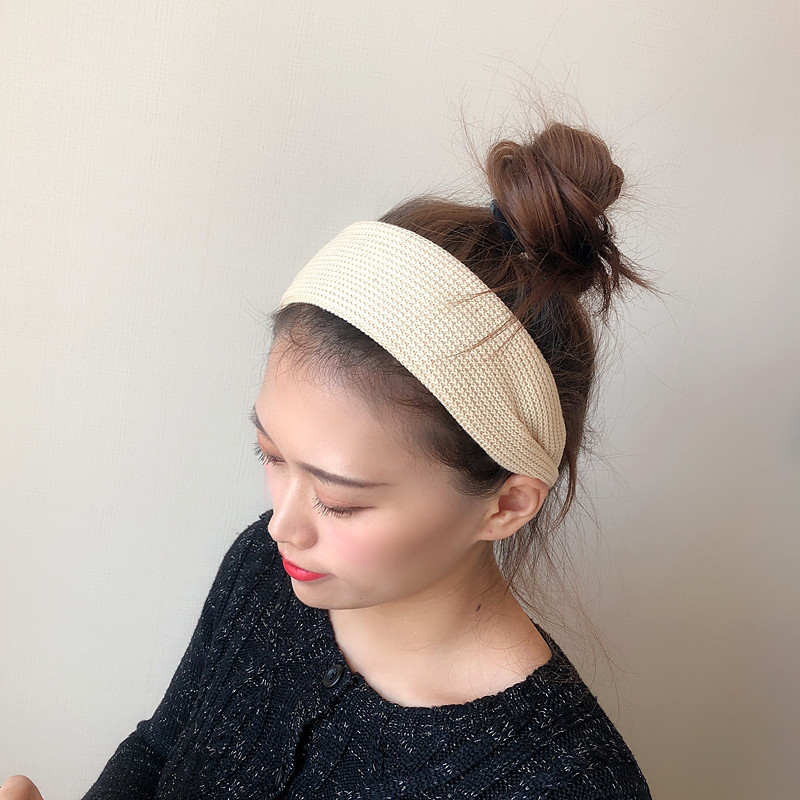 South Korea Ins Retro Pure Color Knit Wide Side Flat Press Hair Head Stirrup 100 Hitch Temperament Brief Net Red Hair Stirrup Hairpin