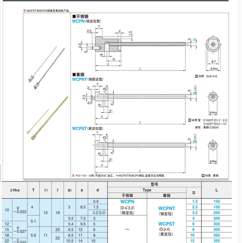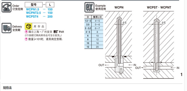 Die transport Water needle WCPNT 1 5 2 5 3 0 4 6 8 10 12 Win water pipe WCPST2 5 cooling needles