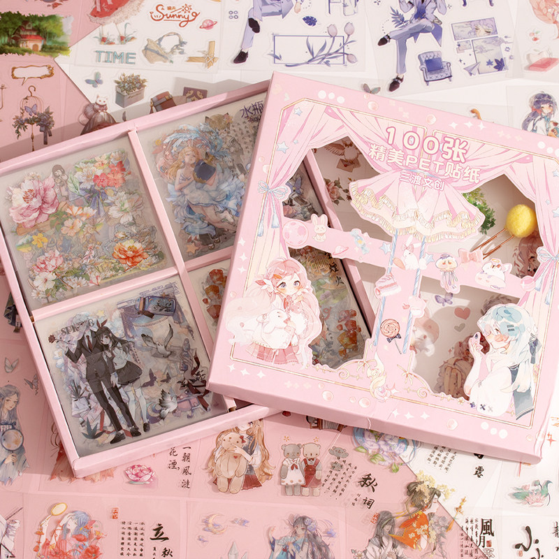 100 exquisite sticker set PET antique set 3 rolls PET tape sweet girl suit 3 roll PET tape cute girl set 3 roll PET tape cute girl suit 3 roll PET tape 24