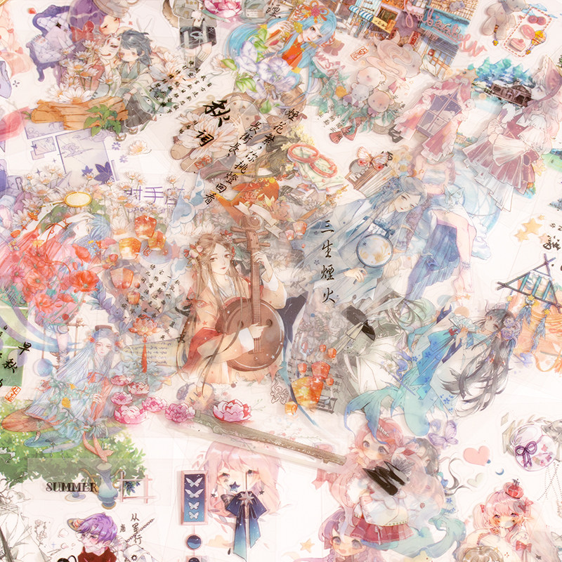100 Handbook Sticker Set PET Waterproof Handbook Sticker Decorative Small Pattern Ancient Characters Exquisite Sticker High Face Value Cute Girl Decorative Sticker Transparent Waterproof Sticker