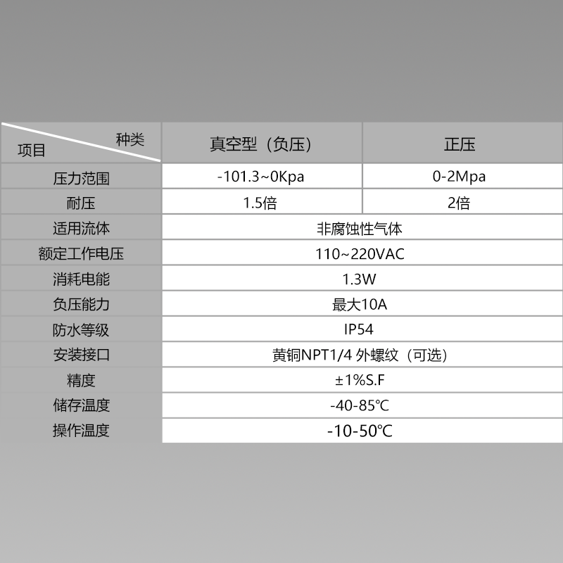 Positive pressure (0-2Mpa) negative pressure (-101 3-0kpa)