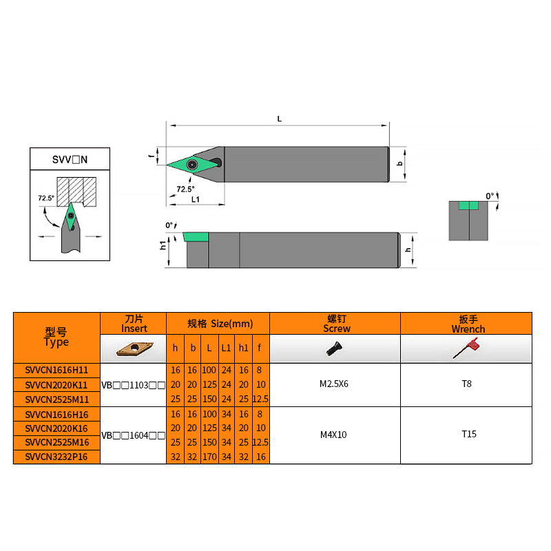 72 5 degree CNC external cylindrical cutter bar tip knife SVVCN1616H16 2020K16 2525M16 with VCMT16