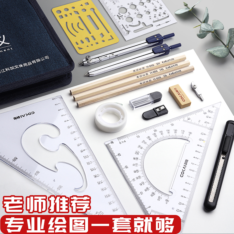 Mechanical drawing tool set compasses professional drawing engineering university drawing college students construction civil ruler sub-regulation professional cad practical drawing instrument to do drawing work high-quality drawing package