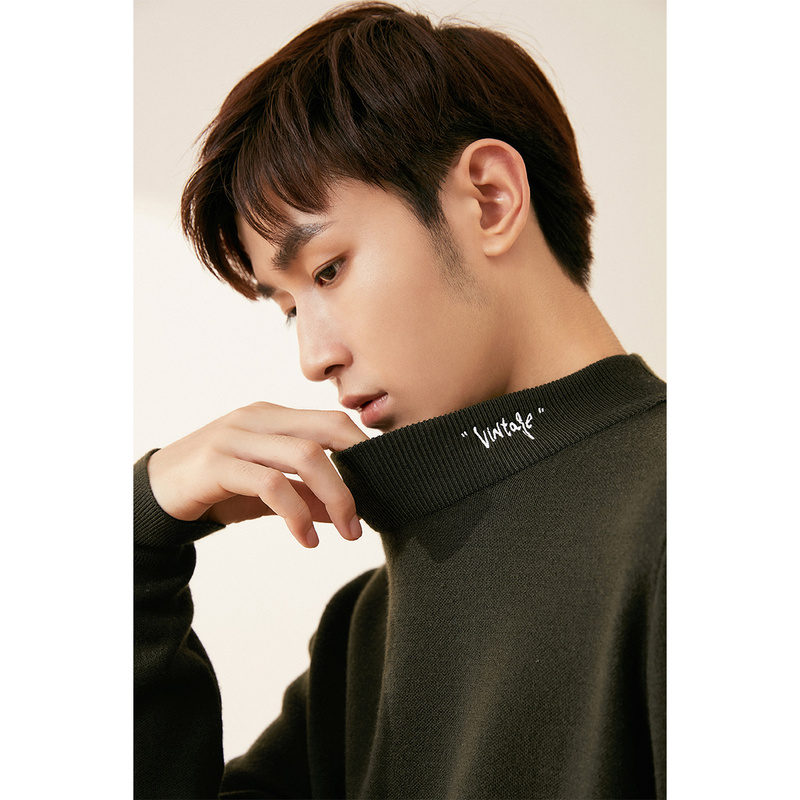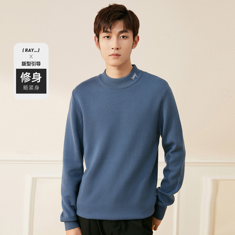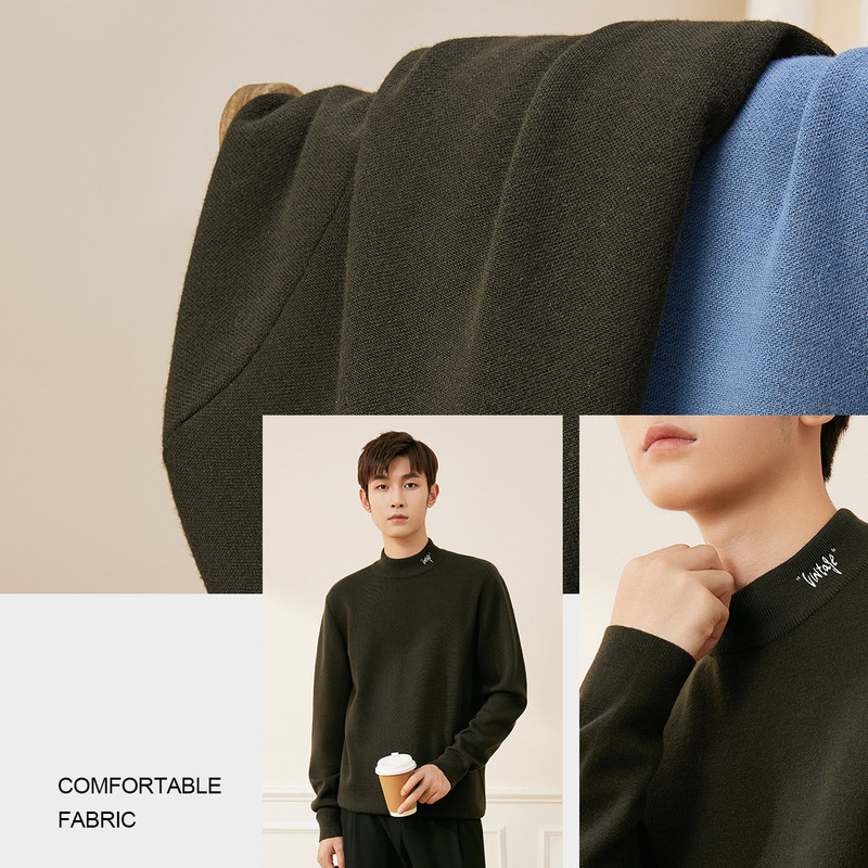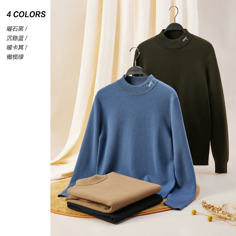 PEACEBIRD Mens Semi-turtleneck cardigan men Spring 2022 New Solid Color Knit Shirt Slim Sweater Men