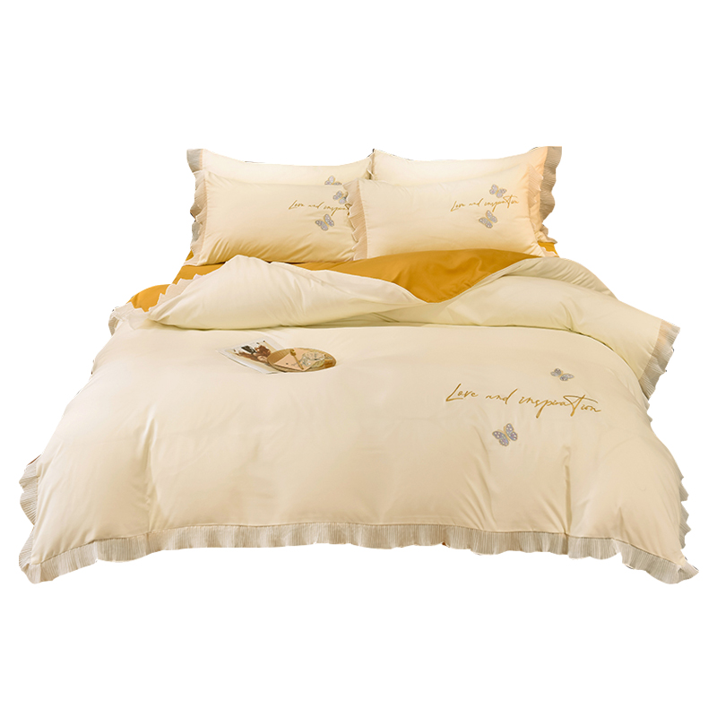 Korean version of minimalist lace bed skirt with four sets of full cotton little fresh teenage girl's heart butterfly embroidery quilt cover naked and can't afford the ball
