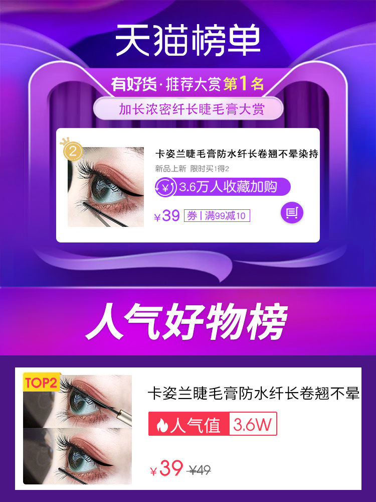 Kazilan mascara waterproof slender long curly thin brush head thick and not easy to smudge not easy to take off makeup long-lasting Li Jiaqi