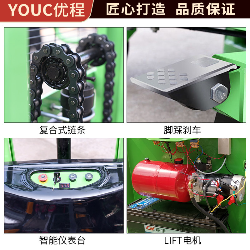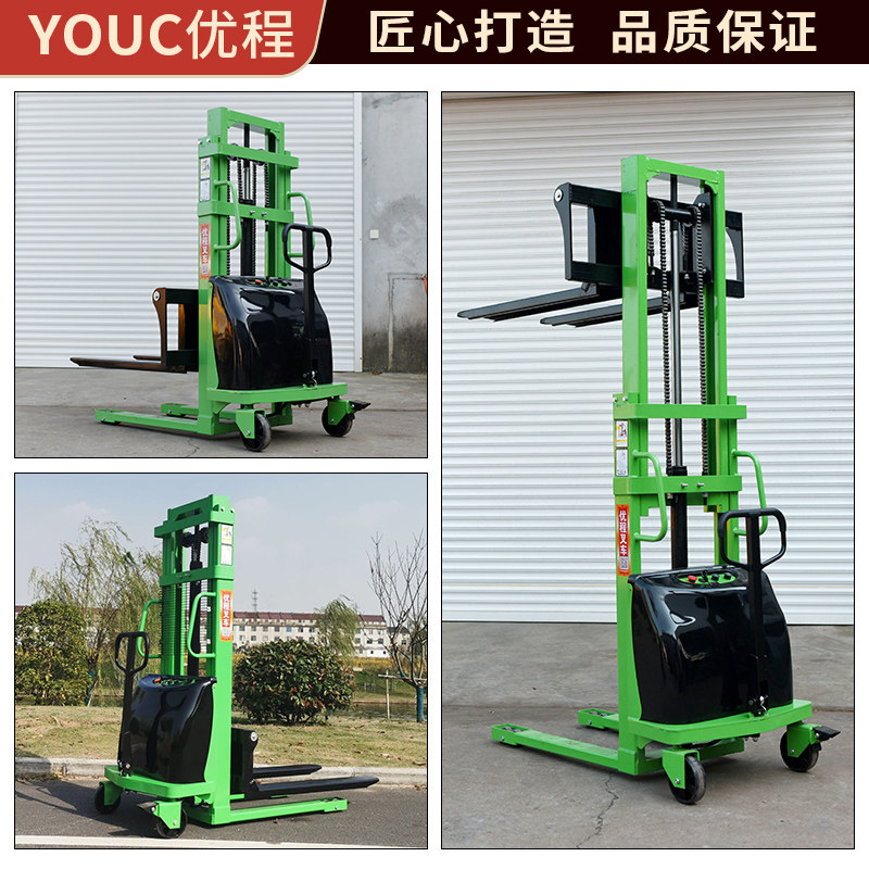 UChing 1 ton-half electric pile high machine charging hydraulic lifting car remote control pile high car 2 ton storage battery lifting stacking high machine