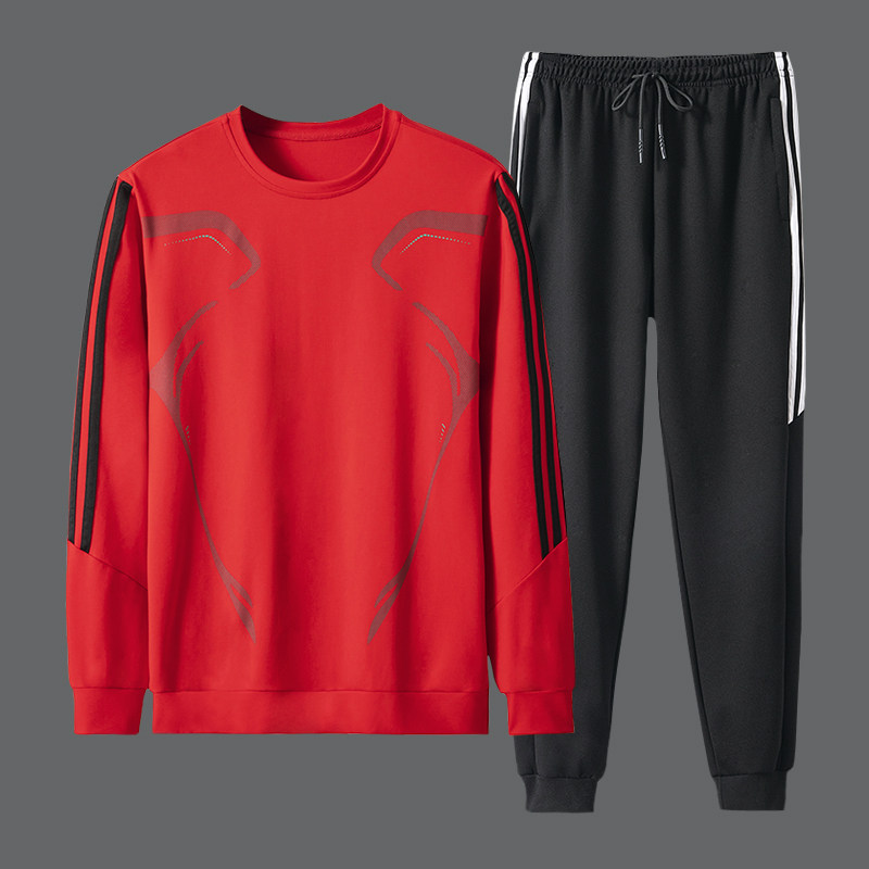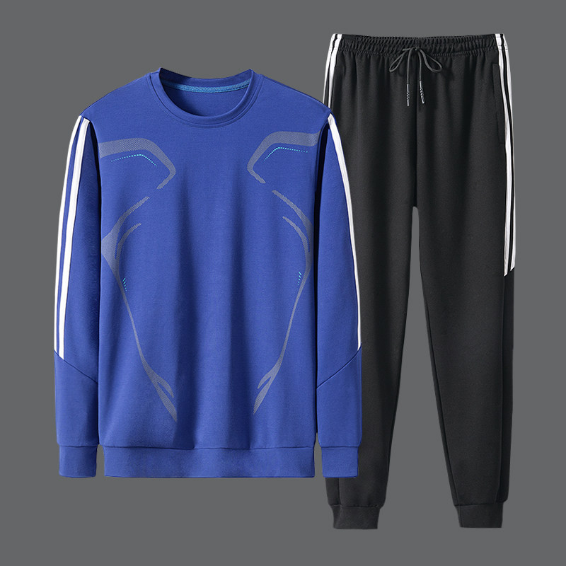 Sports suit men's spring and autumn round neck thick cotton T trend ins large size casual running sports clothes two-piece set