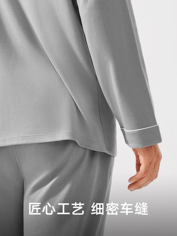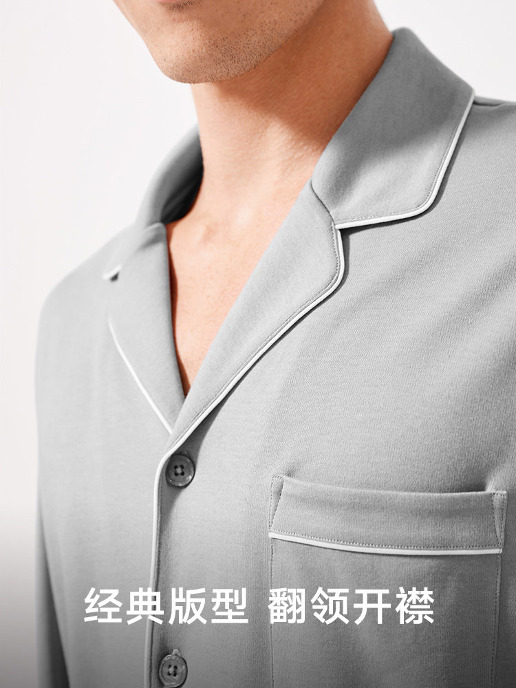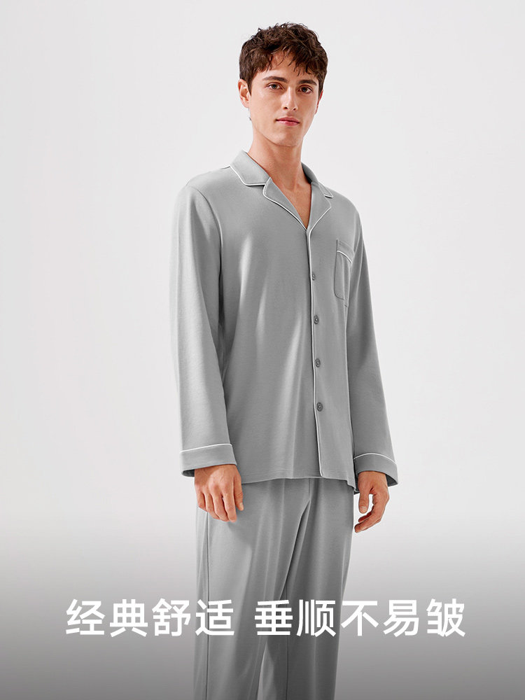 Manifen Men's Home Clothes Pajamas Sleepy Pants Set Open Collar Long Sleeve Pants Comfortable Living Clothes 20320636