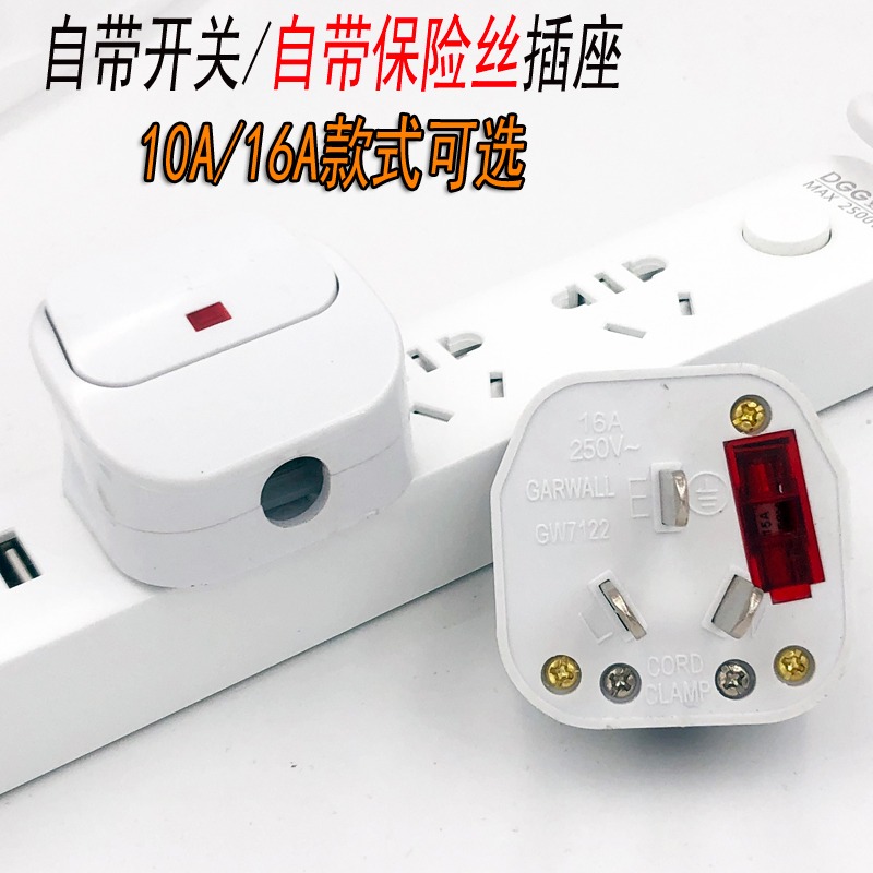 Household power wire wiring three-pin three-hole plug 10A triangle three-item three-plug 16A plug head with switch
