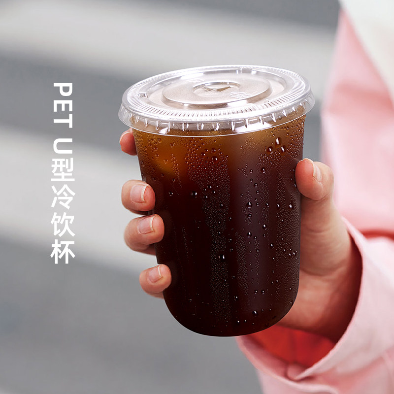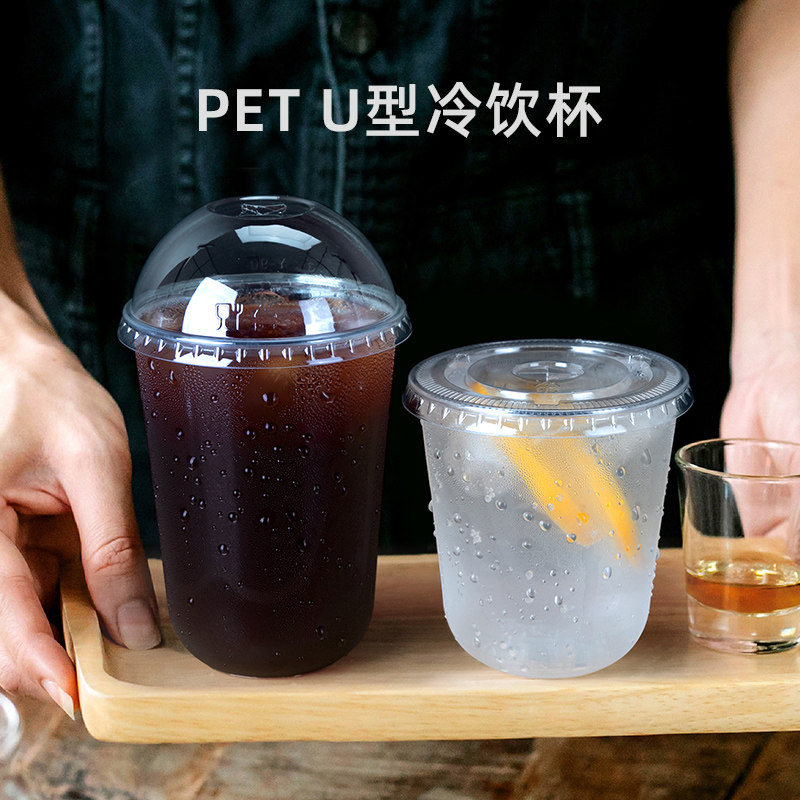 Trumpet Flower Disposable Milk Tea Cup Cold Drink Juice Cup PET Iced Coffee Frozen Yogurt Cup Mesh Red U Type Cup With Lid
