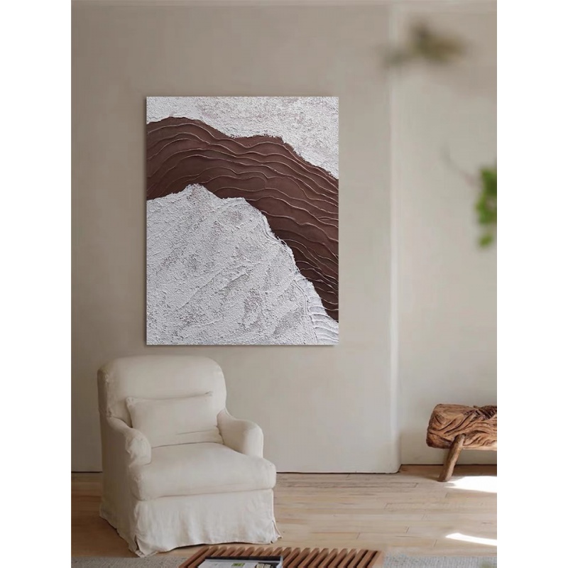 Pure hand-painted oil painting wave abstract wabi sabi wind minimalist three-dimensional thick texture living room porch decorative painting large hanging painting