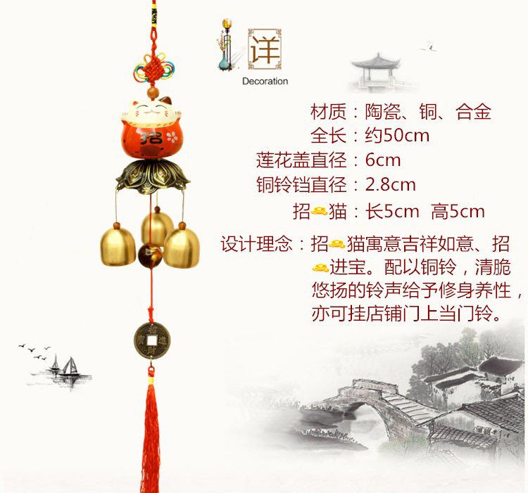 Copper Wind Chimes Shop Doorbell Cat Ornament Retro Metal Bells Shop Entrance Door Home Decoration Gift Crafts