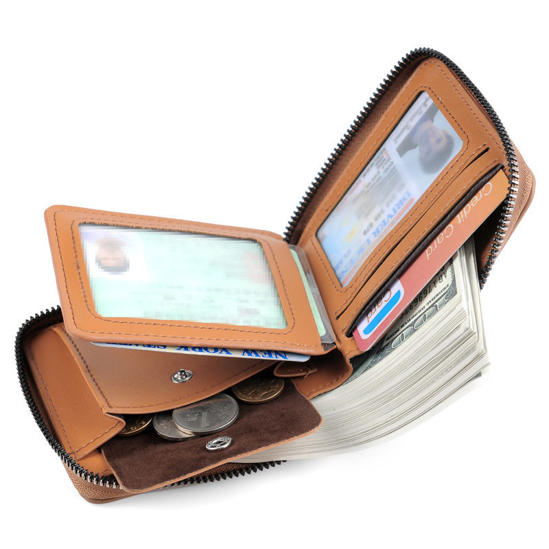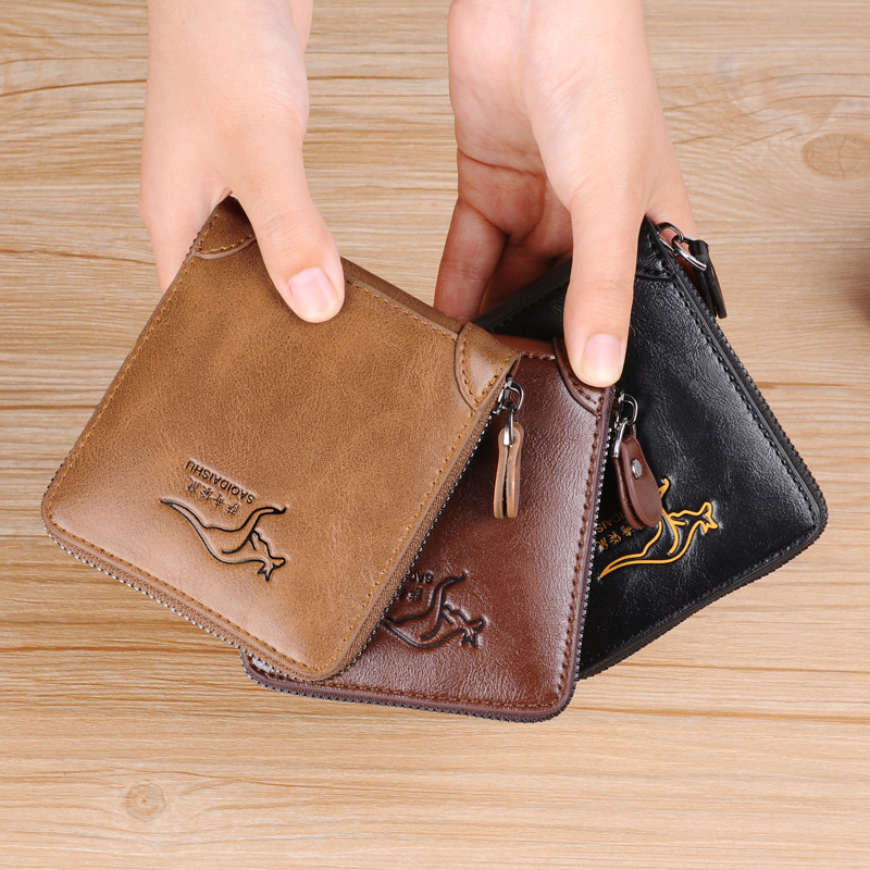 Sage Kangaroo Men's Wallet Short Zip Multi-function Driver License Bag Retro Picket Brush Wallet Male