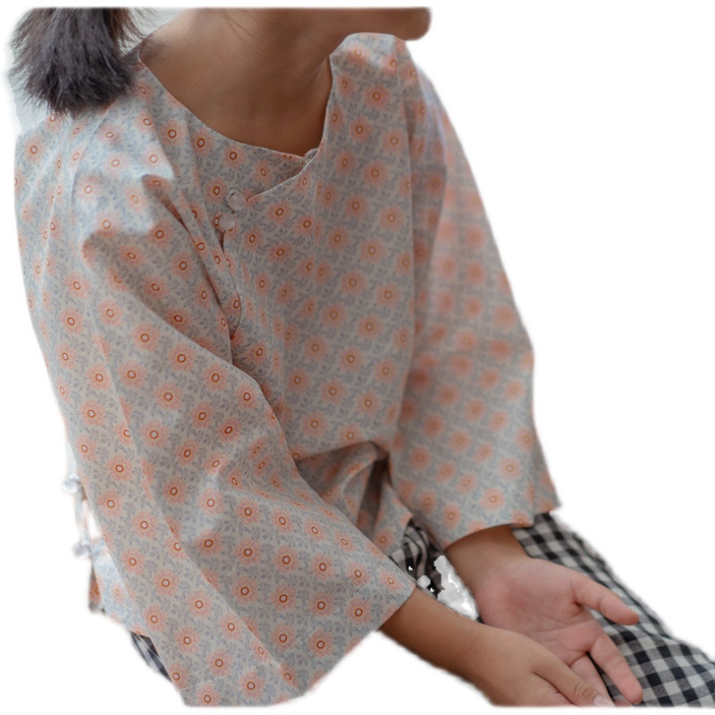 Parent-child clothing in stock Cotton Chinese-style large-breasted floral upside-down large-sleeved top Republic of China retro summer and autumn 2021 Hanfu