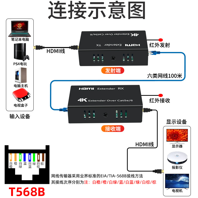 4K HDMI extender 100 meters (EDID automatic identification 4k@30hz infrared extension) 1 pair 4K HDMI extender 120 meters (EDID
