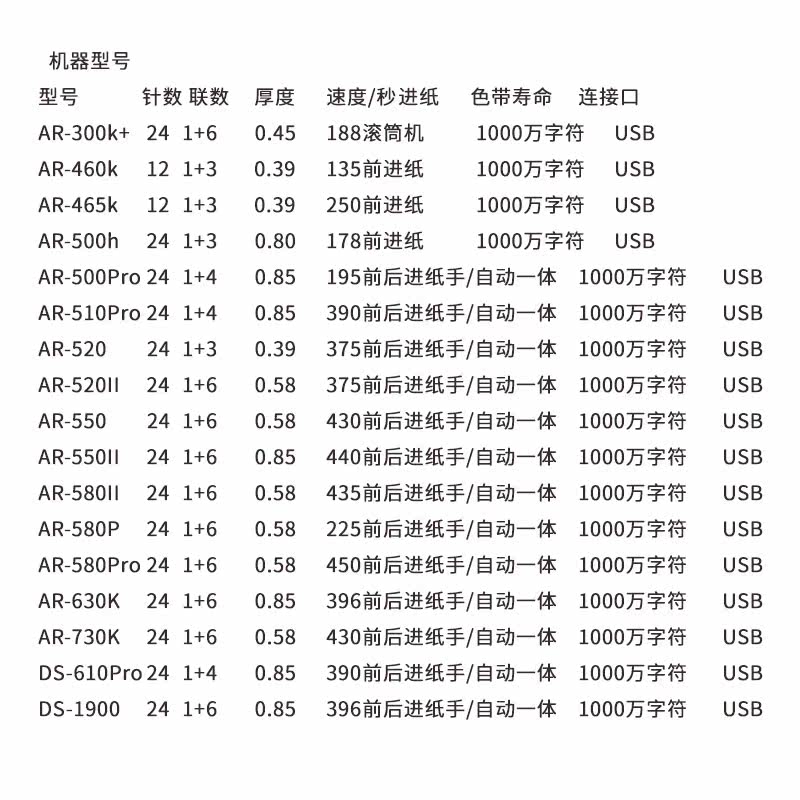 AR-500H (advance paper 1 3 units) AR-500Pro (advance paper 1 4 units) AR-510Pro (front and rear feed 1 4 units) AR-5