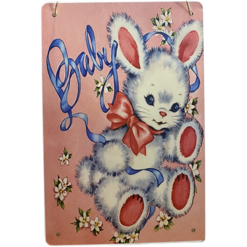 Export foreign trade cute sweet and beautiful retro Zhai and small rabbit pattern sheet metal painted home pendant-Taobao