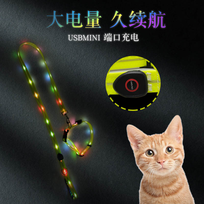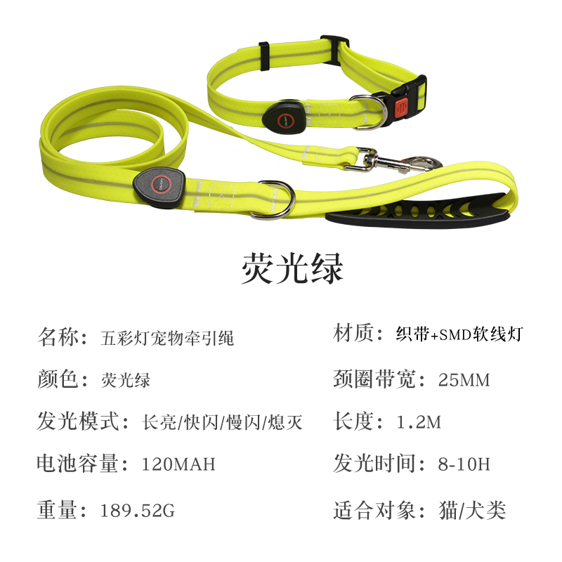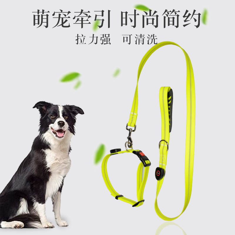 Pet Pull with Item Circle LED Luminous Five Colored Lights Traction Dog Collar Waterproof and Dirty Factory Direct-Taobao