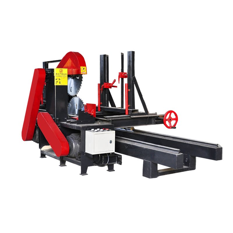Fully automatic round wood push bench saw round wood sports car open material machine precision saw cut plate double saw blade large round wood open plate saw