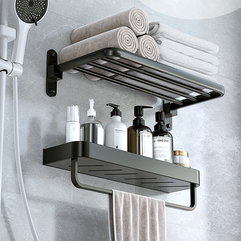 Bathroom towel rack Shelf Integrated Makeup room Perforated Bath Towel Rack Wall-mounted Space Aluminum Towel Rack