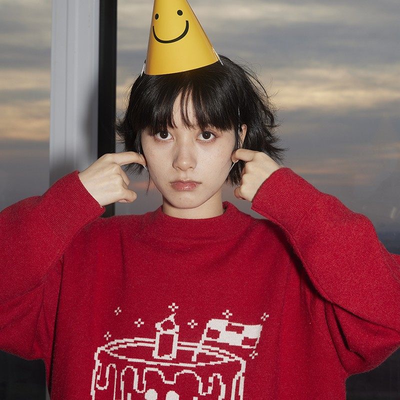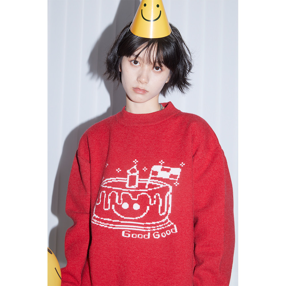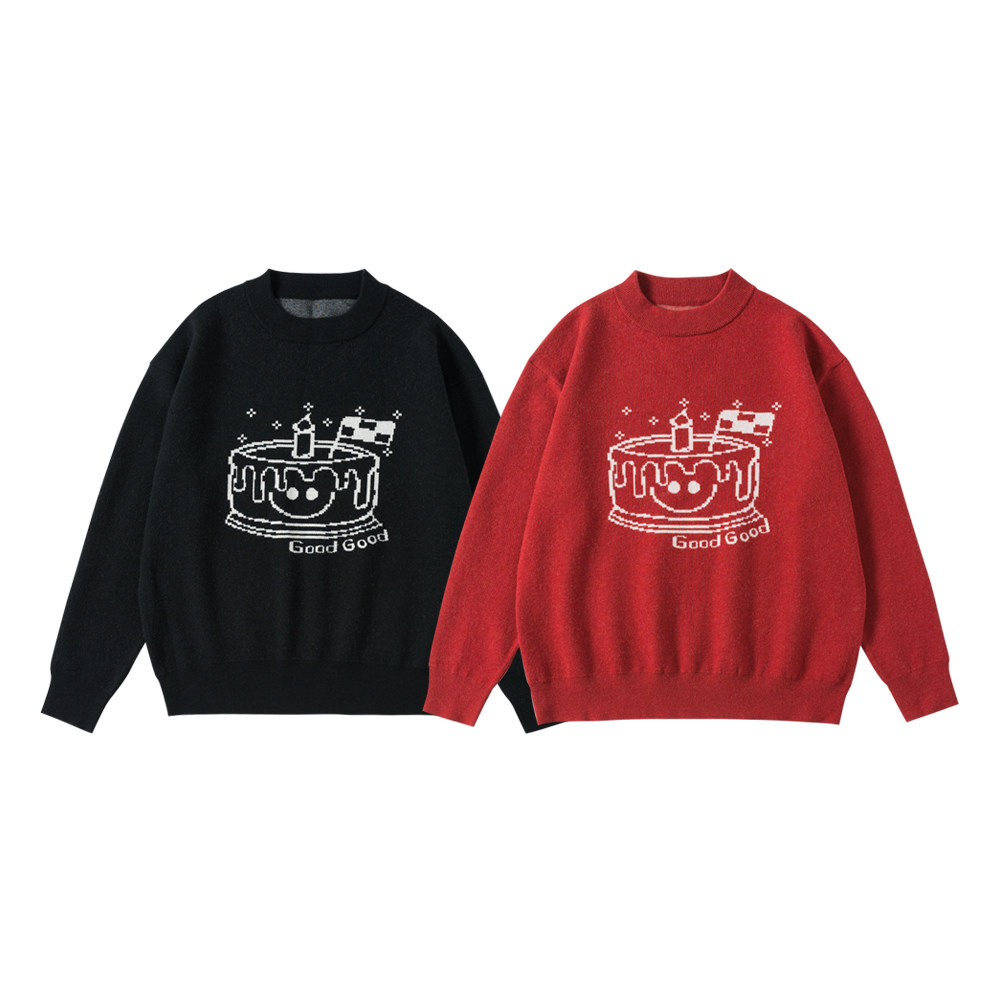 Nice store MeihaoStore Happy birthday cake jacquard knit autumn and winter suede Feeling Round the sweater lovers