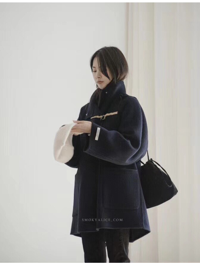 Horn buckle fur coats women 2021 new Korean version loose hide cyan double face cashmere big coat female short