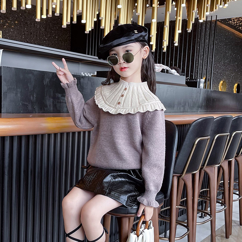 Girls sweater 2021 foreign children autumn and winter thick half high collar children Base shirt plus velvet pullover knitted sweater