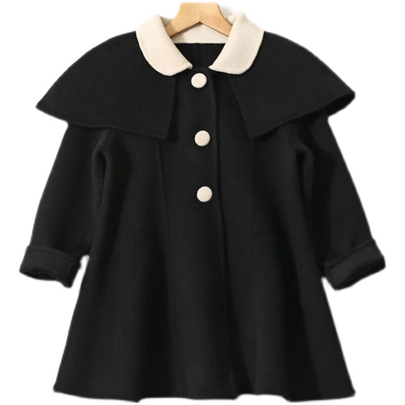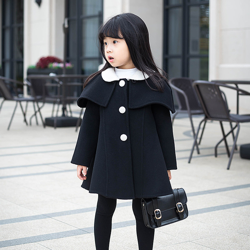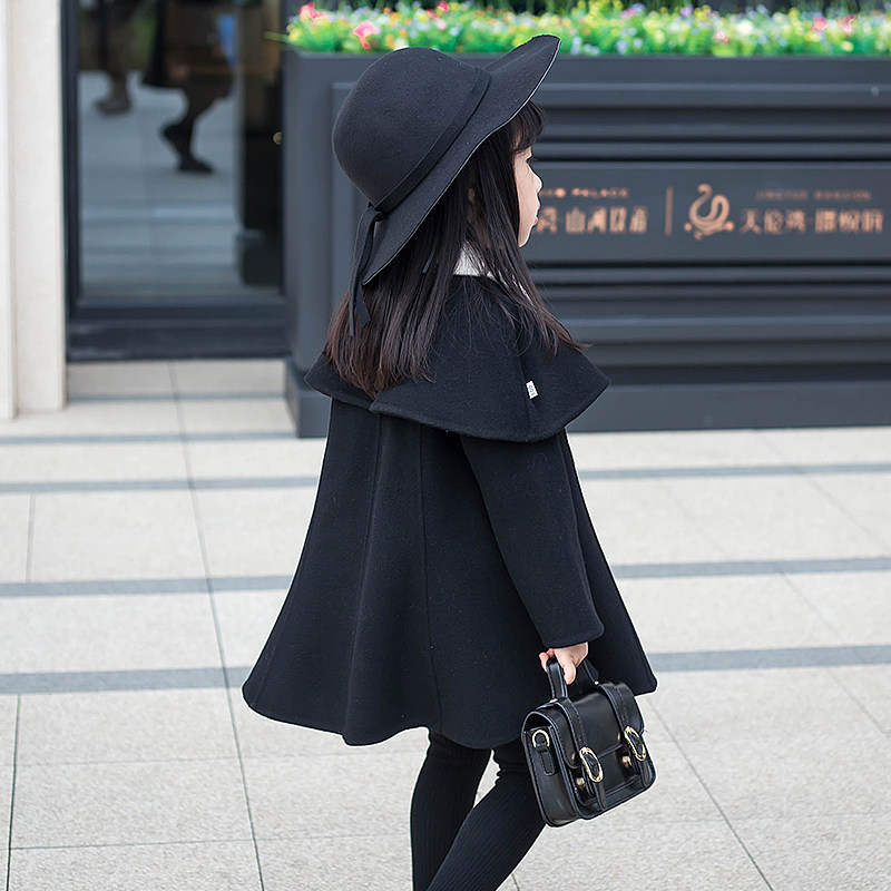 2022 Spring Dress New Girl Bifacial Suede Coat for children Long version retro little fragrant windy wool Cape Jacket