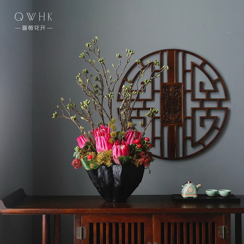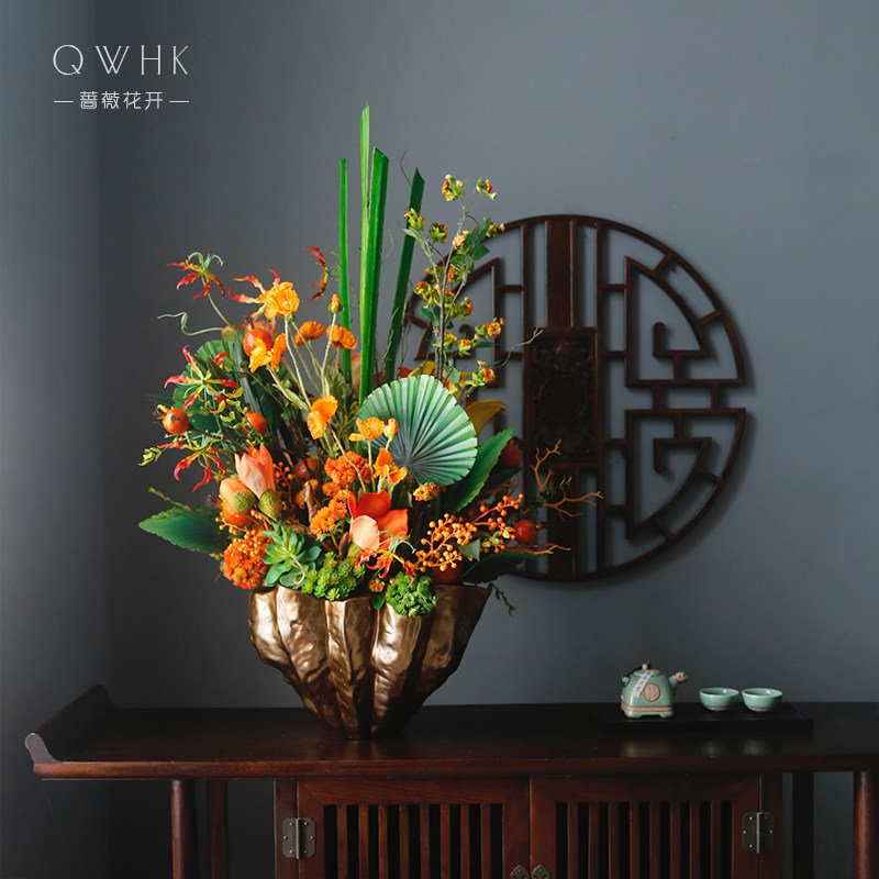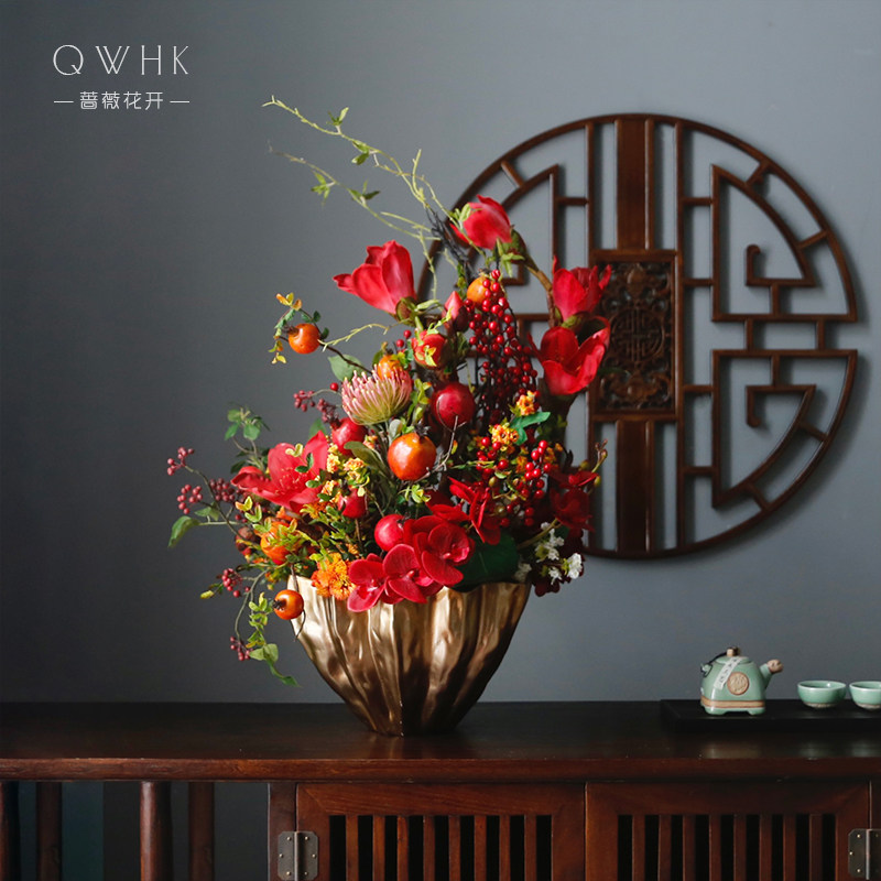 New Chinese-style artificial flower porch decoration living room TV cabinet on both sides of the flower table flower coffee table desktop decoration fake flowers