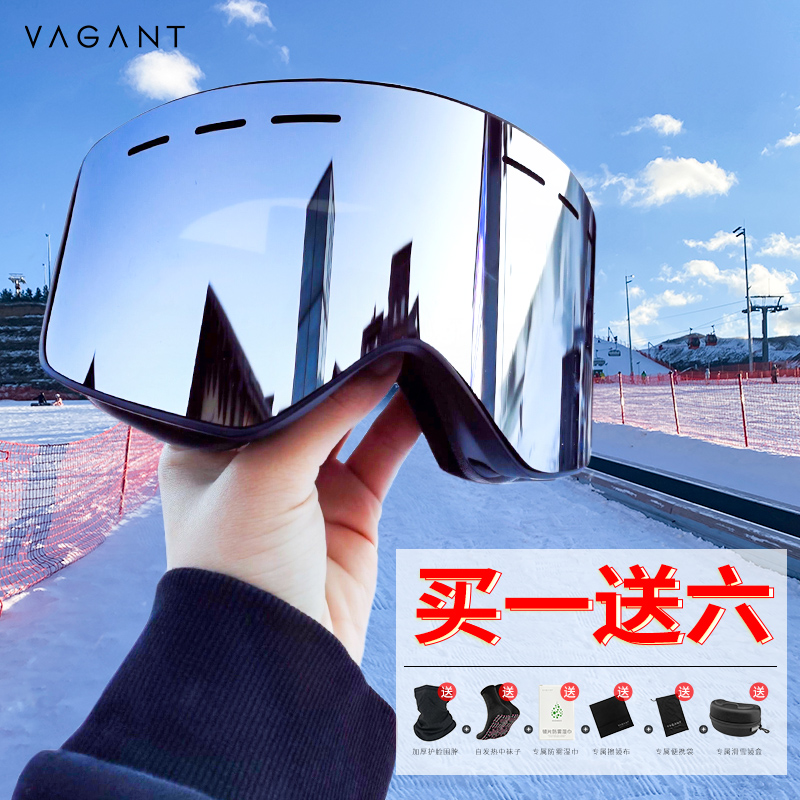 Vagant ski goggles anti-fog cylindrical single double board goggles men and women magnetic suction myopia children ski glasses equipment