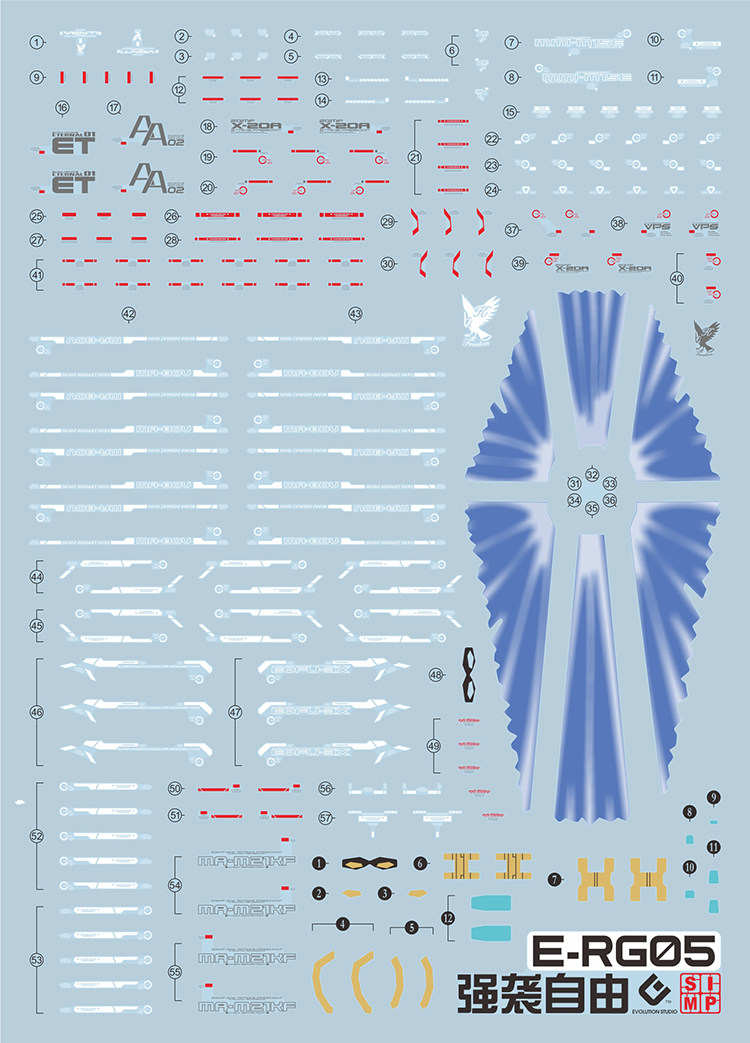 EVO RG 14 Strike Freedom Gundam Model Fluorescent Water Sticker